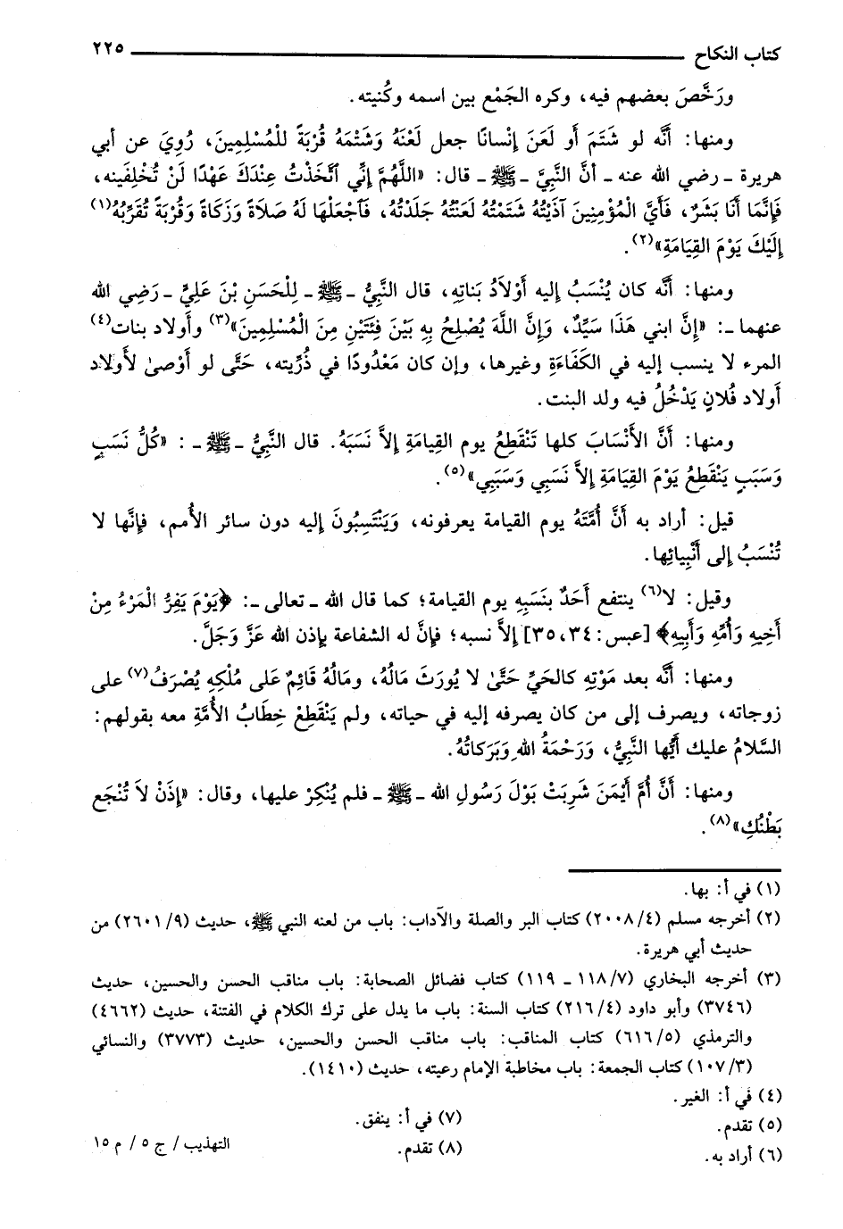 ومنها: أن الأنساب كلها تنقطع يوم القيامة إلا نسبه. قال النبي - صلى الله عليه وسلم -:"كل نسب وسبب ينقطع يوم القيامة غلا نسبي وسببي".