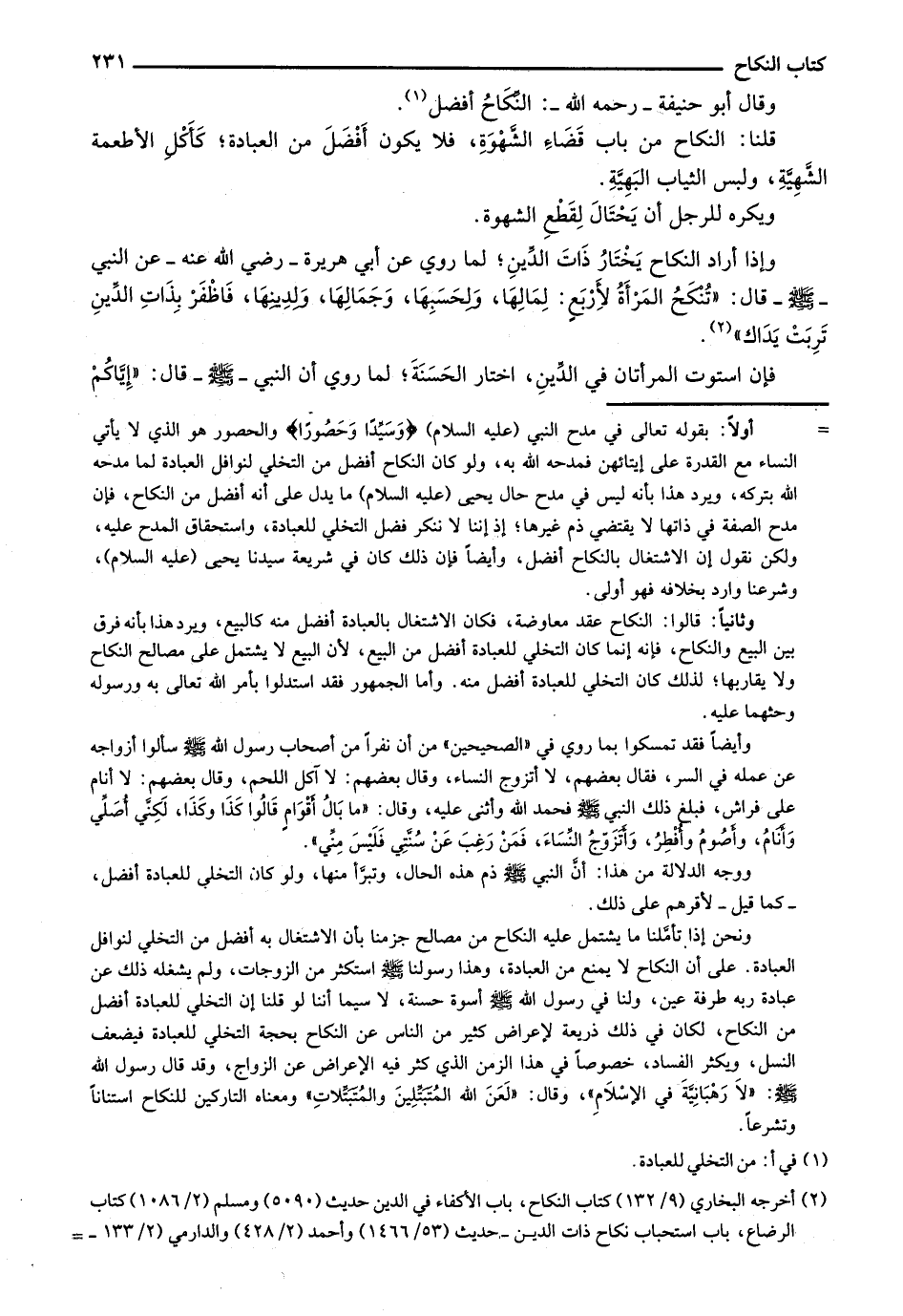 قلنا: النكاح من باب قضاء الشهوة، فلا يكون أفضل من العبادة؛ كأكل الأطعمة الشهية، ولبس الثياب البهية.