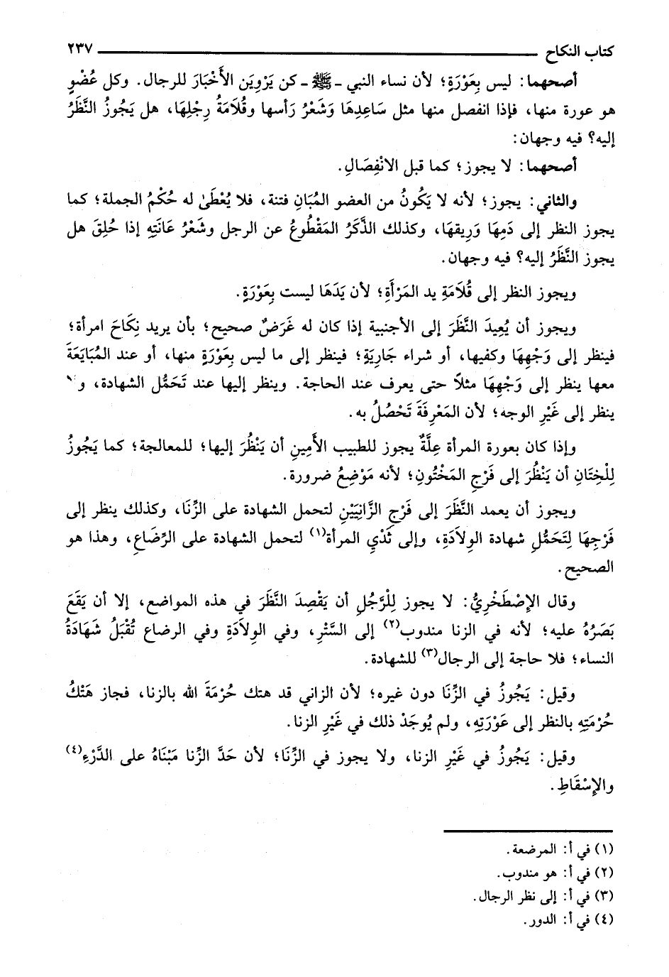 ويجوز أن يعمد النظر إلى فرج الزانيين لتحمل الشهادة على الزنا، وكذلك ينظر إلى فرجها لتحمل شهادة الولادة، وإلى ثدي المرأة لتحمل الشهادة على الرضاع، وهذا هو الصحيح.