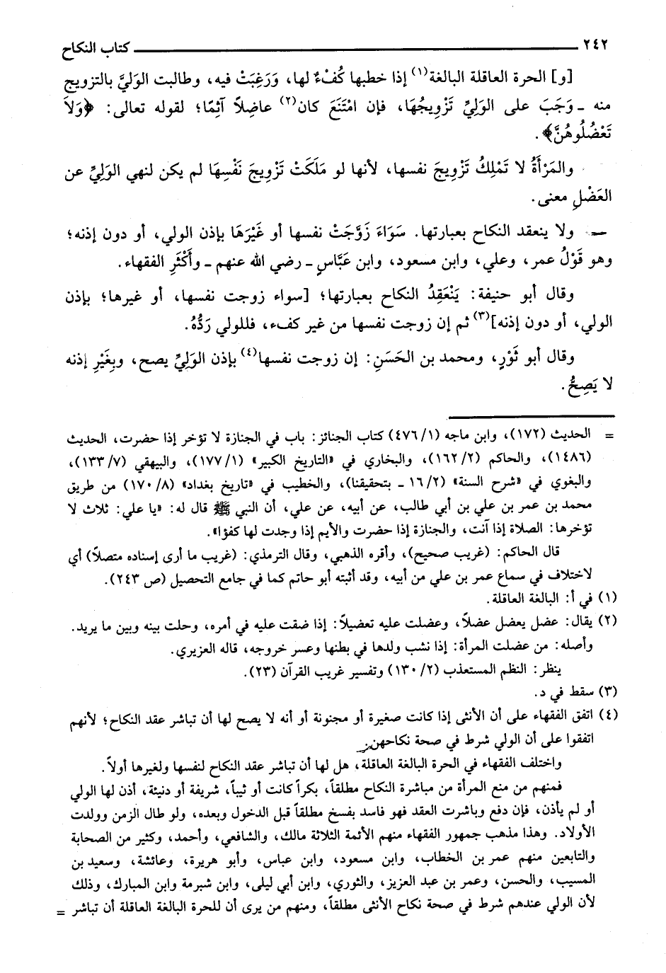 [و] الحرة العاقلة البالغة إذا خطبها كُفء لها، ورغبت فيه، وطالبت الولي بالتزويج منه - وجب على الولي تزويجها، فإن امتنع كان عاضلاً آثماً؛ لقوله تعالى: {وَلا تَعْضُلُوهُنَّ}.