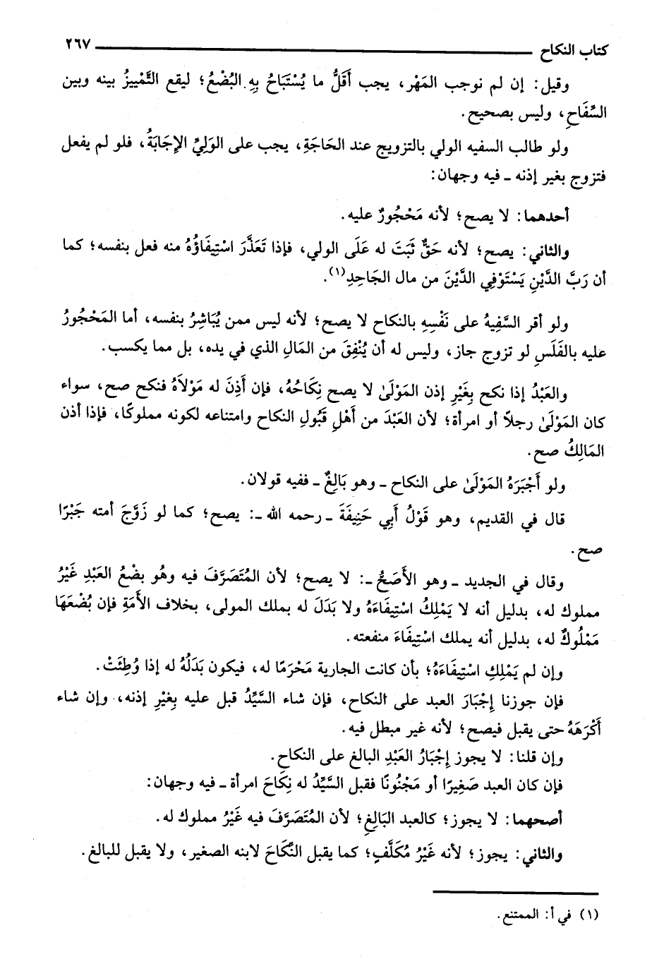 وقال في الجديد- وهو الأصح-: لا يصح؛ لأن المُتصرف فيه وهو بضع العبد غير مملوك له، بدليل أنه لا يملك استيفاءه ولا بدل له بملك المولى، بخلاف الأمة فإن بُضعها مملوك له، بدليل أنه يملك استيفاء منفعته.