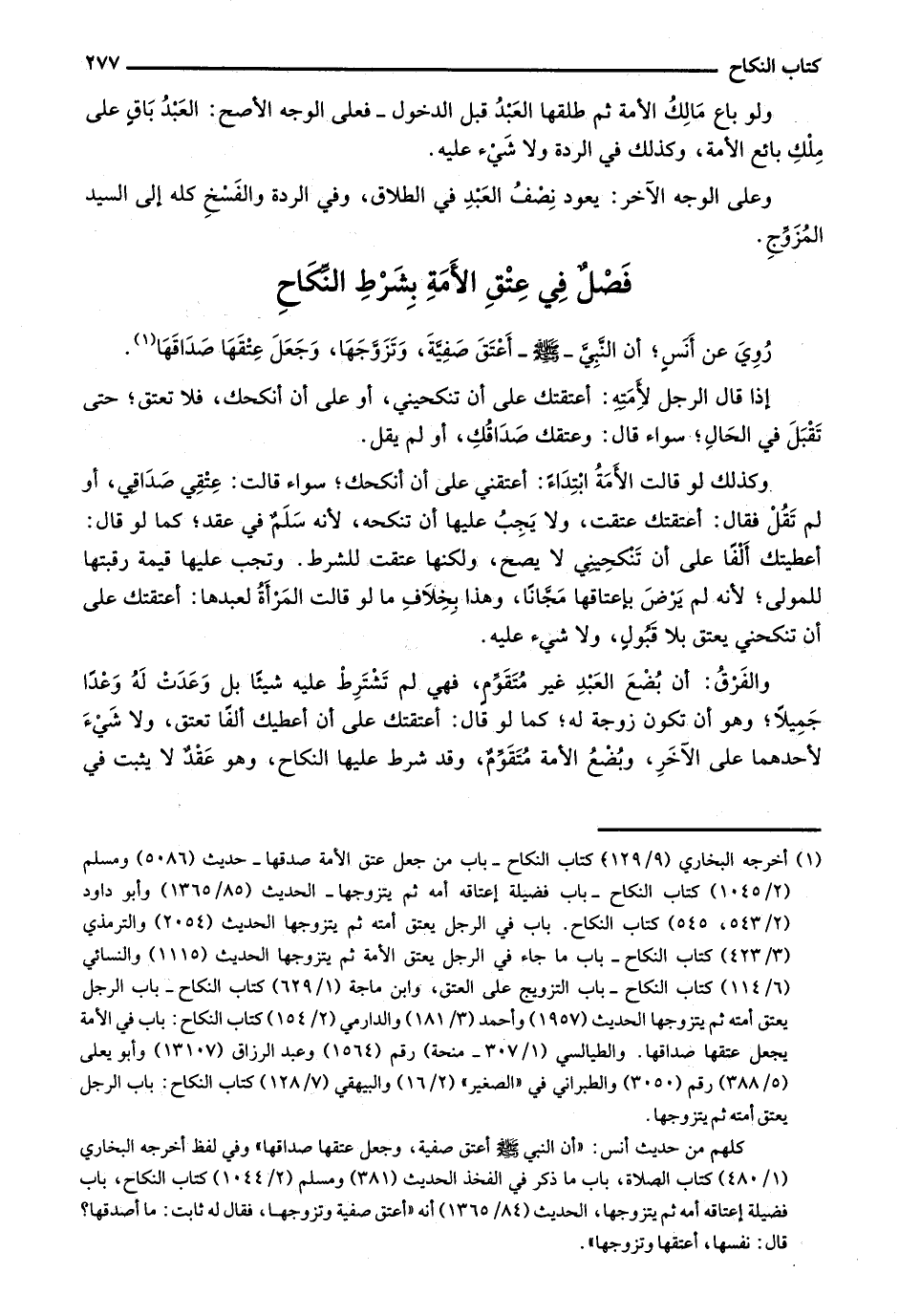 رُوي عن أنس؛ أن النبي - صلى الله عليه وسلم - أعتق صفية، وتزوجها، وجعل عتقها صداقها.
