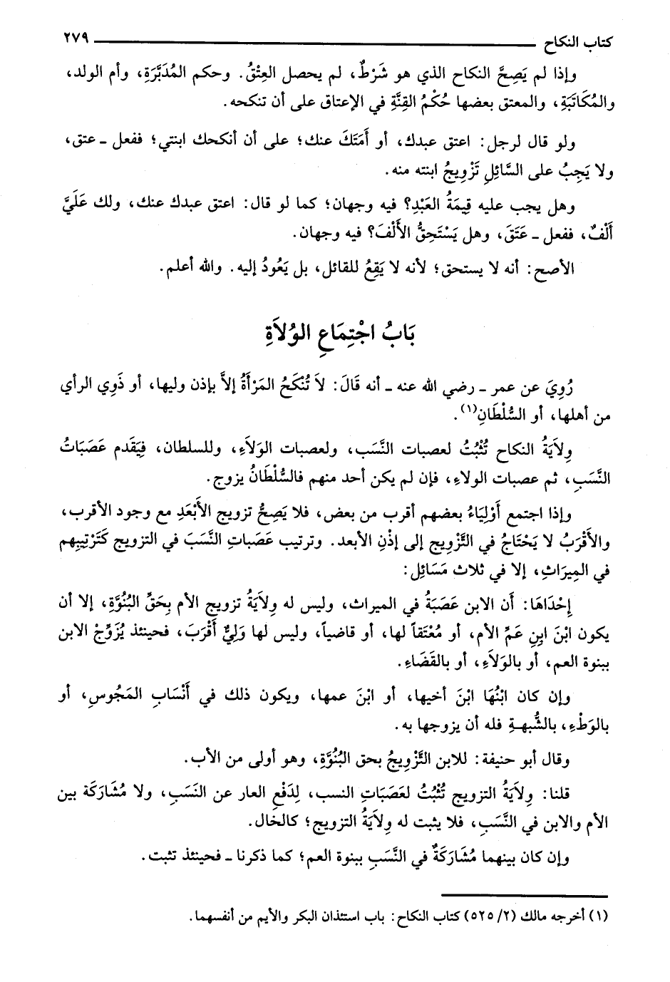 وإذا اجتمع أولياء بعضهم أقرب من بعض، فلا يصح تزويج الأبعد مع وجود الأقرب، والأقرب لا يحتاج في التزويج إلى إذن الأبعد. وترتيب عصبات النسب في التزويج كترتيبهم في الميراث، إلا في ثلاث مسائل:
