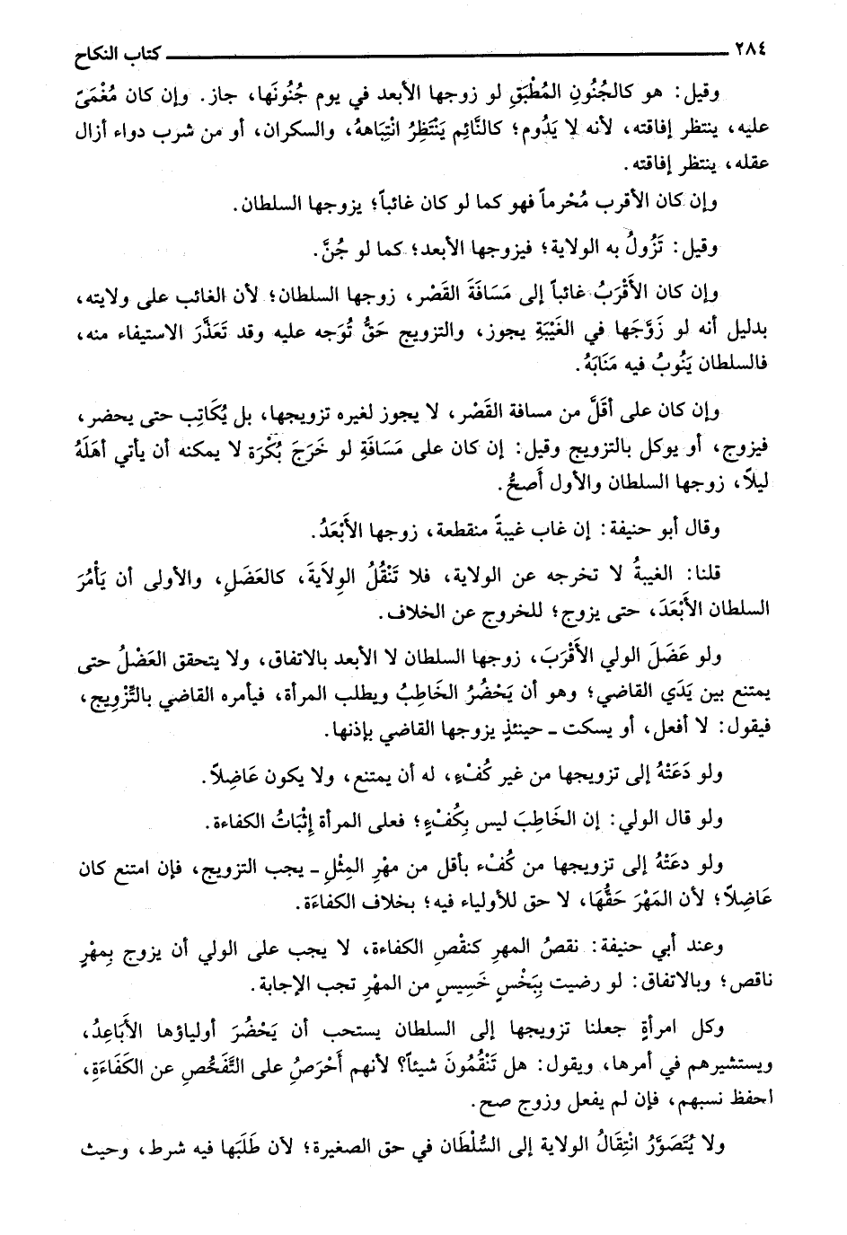 وكل امرأة جعلنا تزويجها إلى السلطان يستحب أن يحضر أولياؤها الأباعد، ويستشيرهم في أمرها، ويقول: هل تنقمون شيئاً؟ لأنهم أحرص على التفحص عن الكفاءة، احفظ نسبهم، فإن لم يفعل وزوج صح.