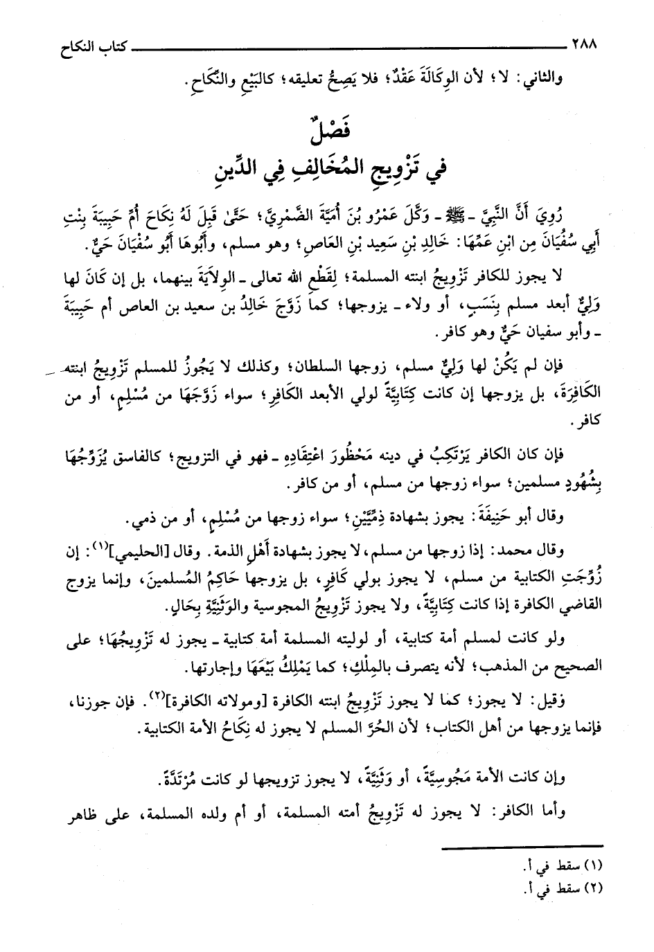 رُوي أن النبي - صلى الله عليه وسلم -وكل عمرو بن أمية الضمري؛ حتى قبل له نكاح أم حبيبة بنت أبي سفيان من ابن عمها: خالد بن سعيد بن العاص؛ وهو مسلم، وأبوها أبو سفيان حي.