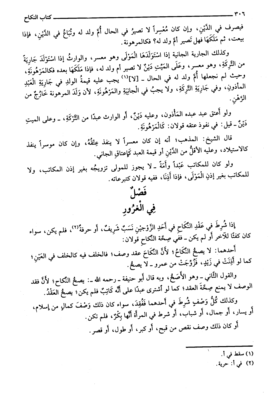 إذا شُرط في عقد النكاح في أحد الزوجين نسب ريفٌ، أو حرفة، فلم يكن، سواء كان كفئاً للآخر أو لم يكن- ففي صحة النكاح قولان:
