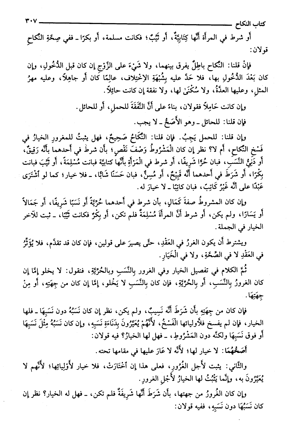 أو شرط في المرأة أنها كاتبية، أو ثيبٌ؛ فكانت مسلمة، أو بكراً- ففي صحة النكاح قولان:
