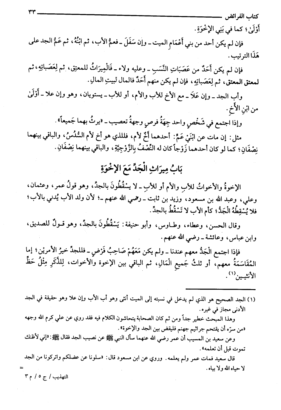 الإخوة والأخوات للأب والأم أو للأب - لا يسقطون بالجد، وهو قول عمر، وعثمان، وعلي، وعبد الله بن مسعود، وزيد بن ثابت - رضي الله عنهم -؛ لأن ولد الأب يُدني بالأب؛ فلا يُسقطه الجد؛ أم الأب لا تسقط بالجد.
