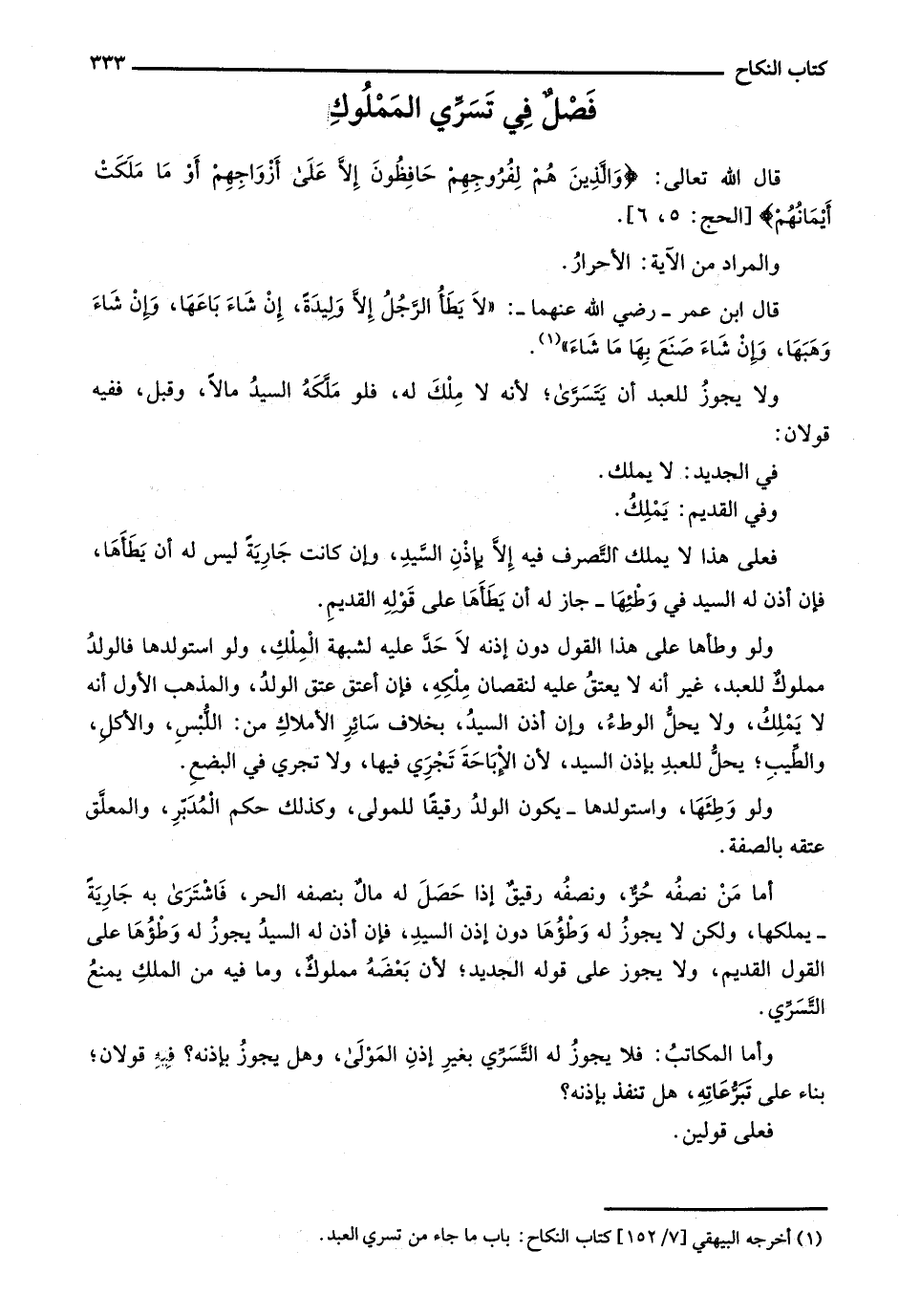 قال الله تعالى: {وَالَّذِينَ هُمْ لِفُرُوجِهِمْ حَافِظُونَ (5) إِلاَّ عَلَى أَزْوَاجِهِمْ أوْ مَا مَلَكَتْ أَيْمَانُهُمْ فَإِنَّهُمْ غَيْرُ مَلُومِينَ} [الحج: 5، 6].