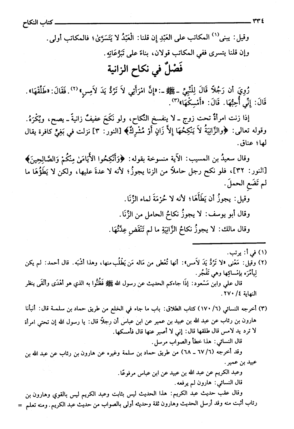 إذا زنت امرأة تحت زوج - لا ينفسخ النكاح، ولو نكح عفيف زانية - يصح، ويُكره. وقوله تعالى: {وَالزَّانِيَةُ لا يَنكِحُهَا إِلاَّ زَانٍ أَوْ مُشْرِكٌ} [النور: 3] نزلت في بغي كافرة يقال لها؛ عناق.