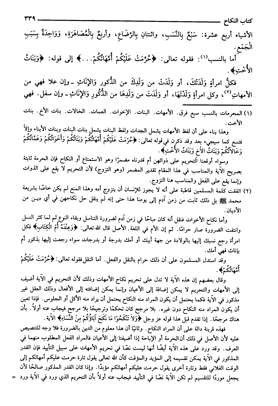 أما بالنسب: فقوله تعالى: {حُرِّمَتْ عَلَيْكُمْ أُمَّهَاتُكُمْ ....} إلى قوله: {وَبَنَاتُ الأُخْتِ}.