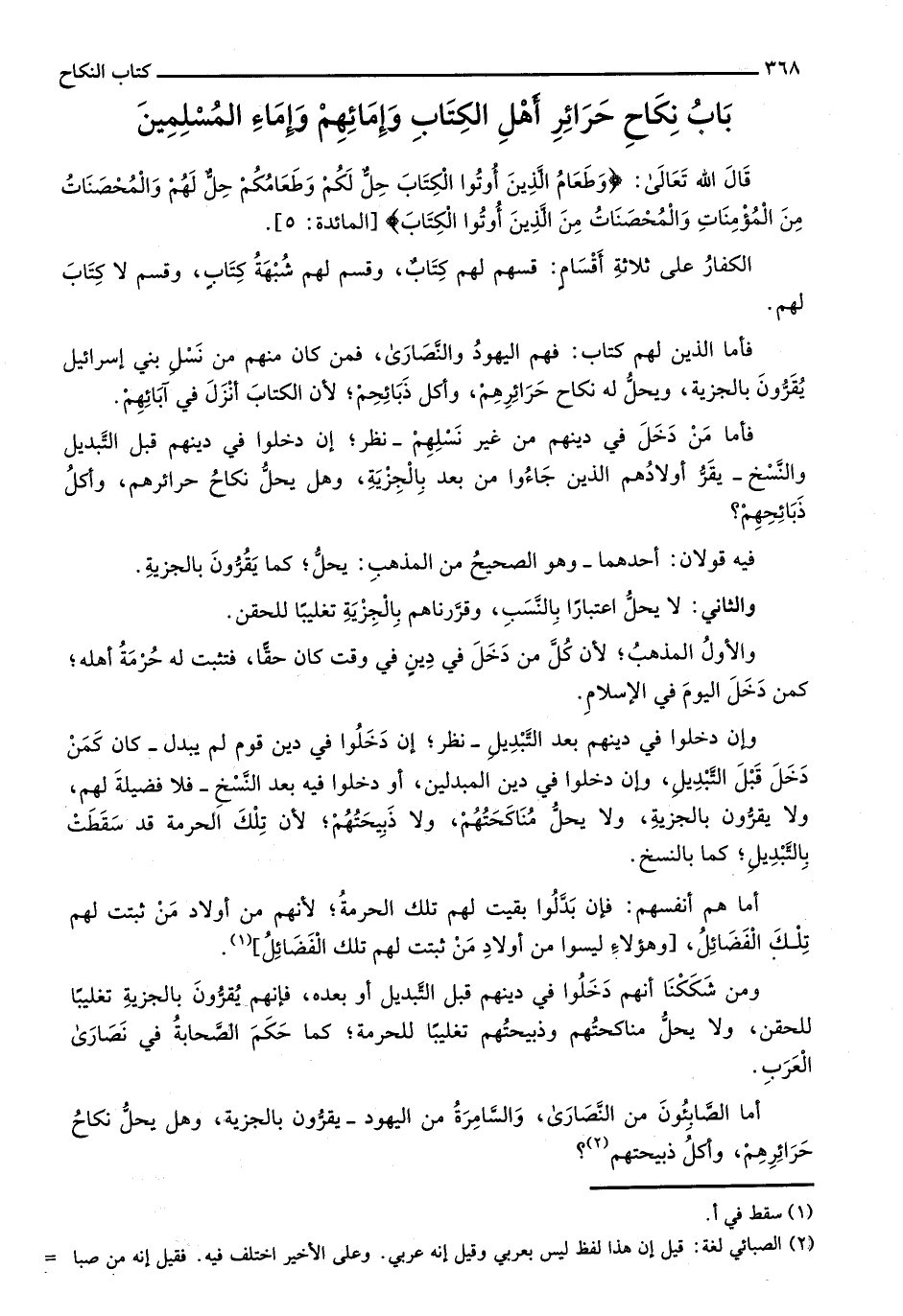 باب نكاح حرائر أهل الكتاب ومائهم وإماء المسلمين