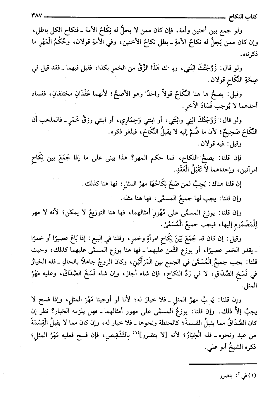 وقيل: إن كان قد جمع بين ناكح امرأة وخمر، وقلنا في البيع: إذا باع عصيراً أو خمراً - يقدر الخمر عصيراً، أو يوزع الثمن عليهما - فهاهنا يوزع المسمى عليهما كذلك، وحيث قلنا: يجب جميع المسمى في الجمع بين المرأتين، وكان الزوج جاهلاً بالحال - فله الخيار في فسخ الصداق، لا في رد النكاح، فإن شاء أجاز، وإن شاء فسخ الصداق، وعليه مهر المثل.