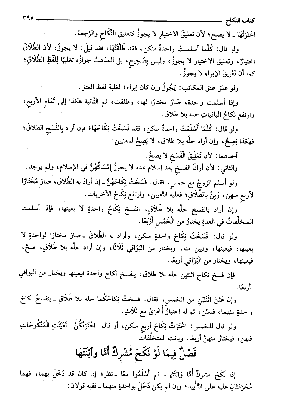 فإن فسخ نكاح اثنتين حله بلا طلاق، ينفسخ نكاح واحدة فيعينها ويختار من البواقي أربعاً.