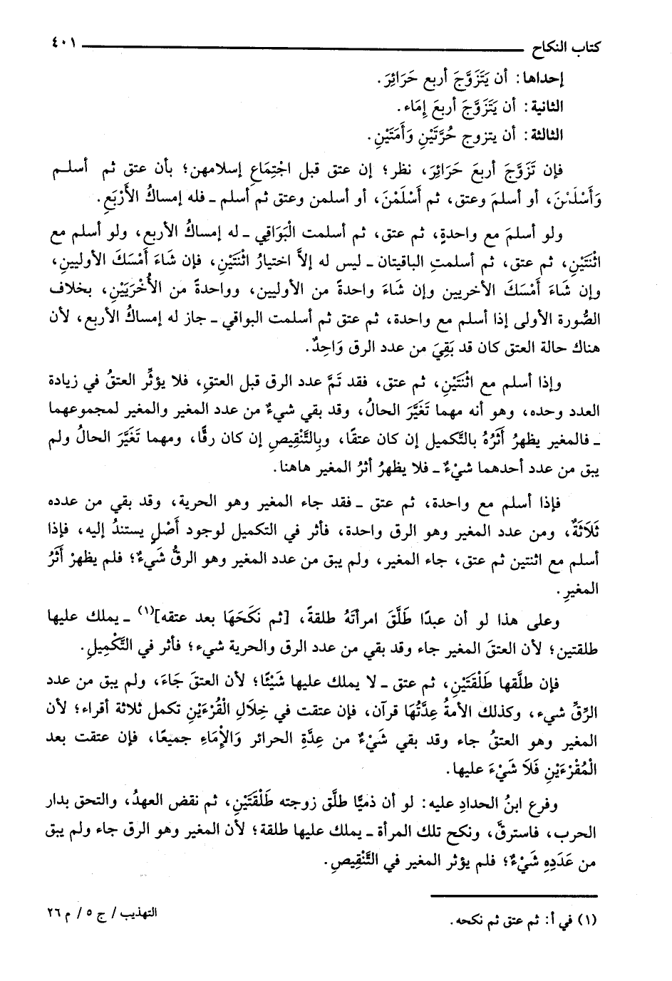 فإذا أسلم مع واحدة، ثم عتق - فقد جاء المغير وهو الحرية، وقد بقي من عدده ثلاثة، ومن عدد المغير وهو الرق واحدة، فأثر في التكميل لوجود أصل يستند إليه، فإذا أسلم مع اثنتين ثم عتق، جاء المغير، ولم يبق من عدد المغير وهو الرق شيءٌ؛ فلم يظهر أثرُ المغير.