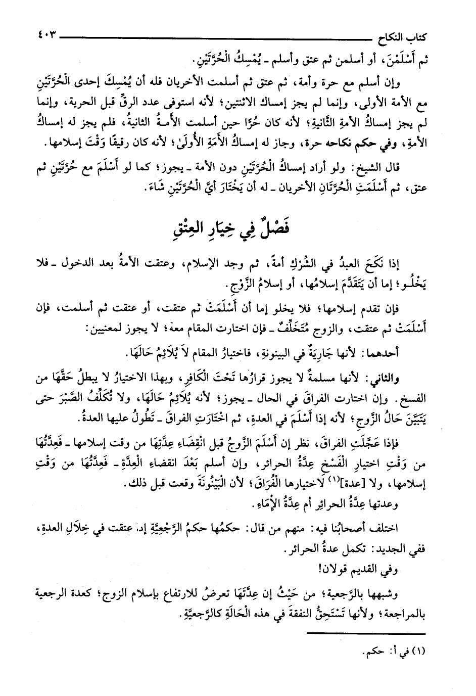إذا نكح العبد في الشرك أمة، ثم وجد الإسلام، وعتقت الأمة بعد الدخول- فلا يخلو؛ إما أن يتقدم إسلامها، أو إسلام الزوج.