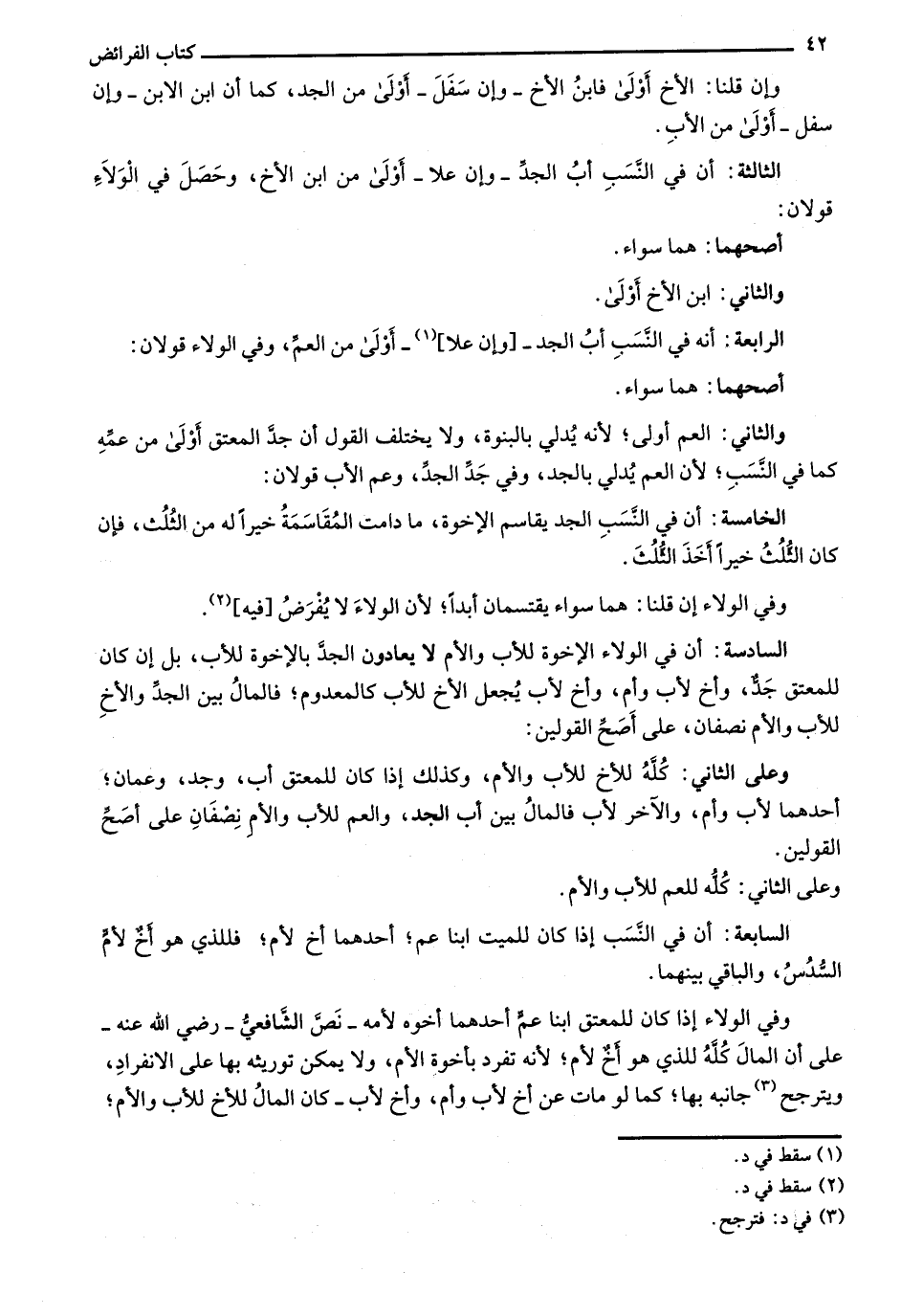 السادسة: أن في الولاء الإخوة للأب والأم لا يعادون الجد بالإخوة للأب، بل إن كان للمعتق جد، وأخ لأب وأم، وأخ لأب يُجعل الأخ للأب كالمعدوم؛ فالمال بين الجد والأخ للأب والأم نصفان، على أصح القولين.