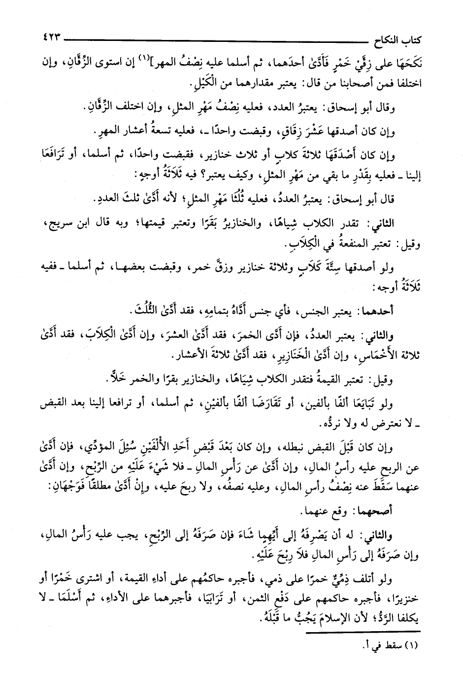 نكحها على زقي خمر فأدى أحدهما، ثم أسلما عليه نصف المهر] إن استوى الزفَّان، وإن اختلفا فمن أصحابنا من قال: يعتبر مقدارهما من الكيل.
