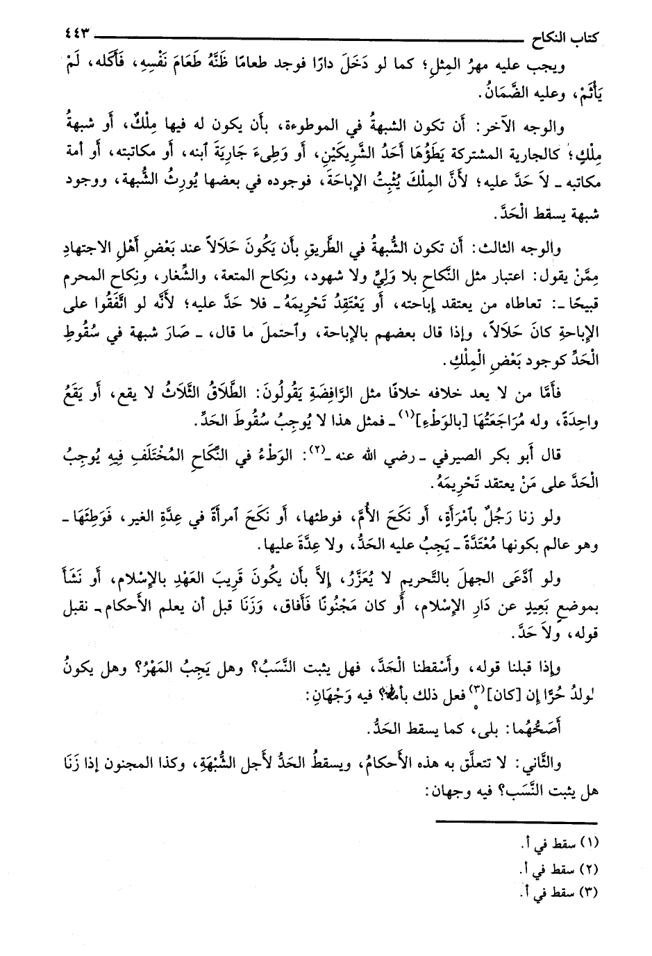 فأما من لا يعد خلافه خلافاً مثل الرافضة يقولون: الطلاق الثلاث لا يقع، أو يقع واحدة، وله مراجعتها [بالوطء]- فمثل هذا لا يوجب سقوط الحد.