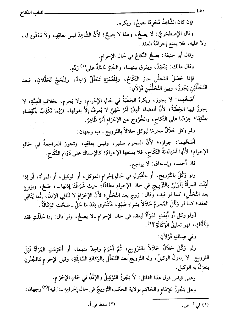 أصحهما: لا يجوز، ويكره الخطبة في حال الإحرام، ولا يحرم، بخلاف العدة، لايجوز فيها الخطبة؛ لأن انقضاء العدة أمر خفي لا يعرف إلا بقولها، فربما تكذب بانقضاء عدتها؛ حرصاً على النكاح، والخروج عن الإحرام أمر ظاهر.