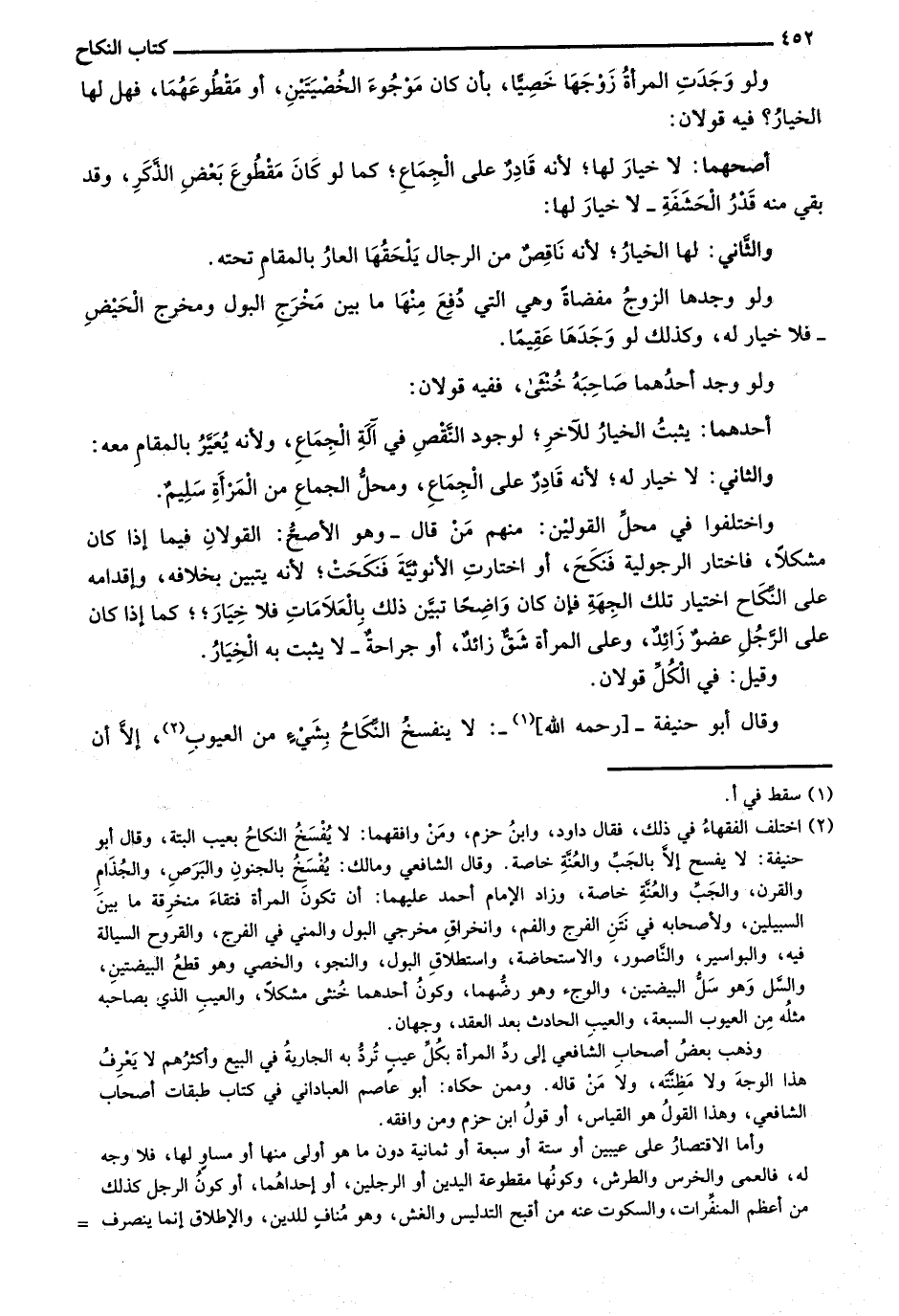 وقال أبو حنيفة-[رحمه الله]-: لا ينفسخ النكاح بشيء من العيوب، إلا أن