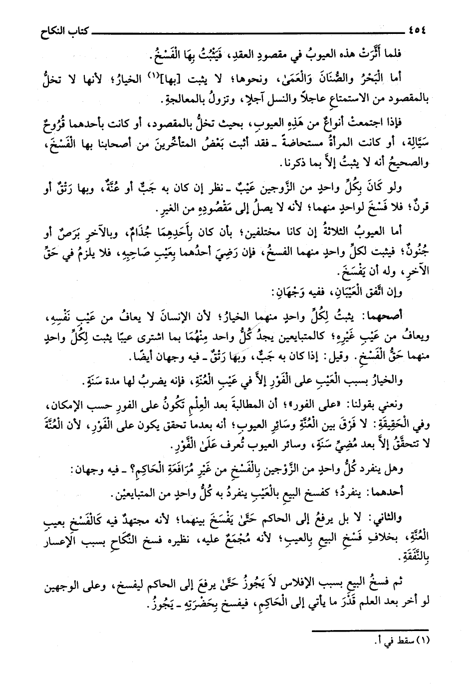 والثاني: لا بل يرفعُ إلى الحاكم حتى يفسخ بينهما؛ لأنه مجتهدٌ فيه كالفسخ بعيب العنة، بخلاف فسخ البيع بالعيب؛ لأنه مجمعٌ عليه، نظيره فسخ النكاح بسبب الإعسار بالنفقة.