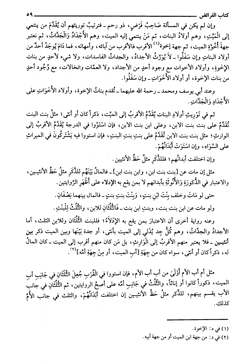 وعند أبي يوسف ومحمد - رحمة الله عليهما - تُقدم بنات الإخوة، وأولاد الأخوات على الأجداد والجدات.