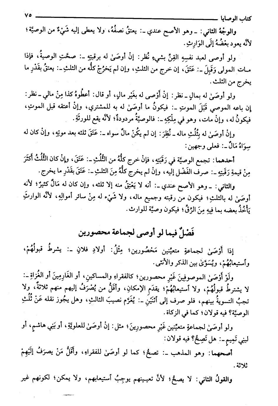 فصل فيما لو أوصى لجماعة محصورين