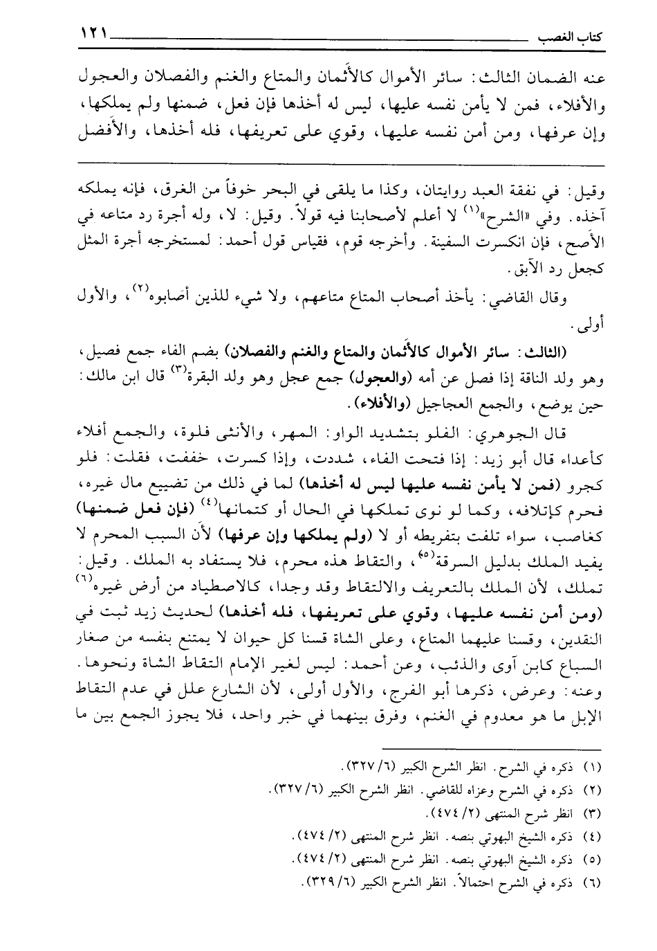(الثَّالِثُ: سَائِرُ الْأَمْوَالِ كَالْأَثْمَانِ، وَالْمَتَاعِ، وَالْغَنَمِ، وَالْفُصْلَانِ) بِضَمِّ الْفَاءِ جَمْعُ فَصِيلٍ، وَهُوَ وَلَدُ النَّاقَةِ إِذَا فُصِلَ عَنْ أُمِّهِ (وَالْعُجُولِ) جَمْعُ عِجْلٍ، وَهُوَ وَلَدُ الْبَقَرَةِ، قَالَ ابْنُ مَالِكٍ: حِينَ يُوضَعُ، وَالْجَمْعُ الْعَجَاجِيلُ (وَالْأَفْلَاءُ) قَالَ الْجَوْهَرِيُّ: الْفُلُوُّ، بِتَشْدِيدِ الْوَاوِ، الْمُهْرُ، وَالْأُنْثَى فُلُوَّةٌ، وَالْجَمْعُ أَفْلَاءٌ كَأَعْدَاءٍ. قَالَ أَبُو زَيْدٍ: إِذَا فَتَحْتَ الْفَاءَ شَدَّدْتَ، وَإِذَا كَسَرْتَ خَفَّفْتَ، فَقُلْتُ: فِلْوٌ كَجِرْوٍ (فَمَنْ لَا يَأْمَنُ نَفْسَهُ عَلَيْهَا لَيْسَ لَهُ أَخْذُهَا) لِمَا فِي ذَلِكَ مِنْ تَضْيِيعِ مَالِ غَيْرِهِ، فَحَرُمَ كَإِتْلَافِهِ، وَكَمَا لَوْ نَوَى تَمَلُّكَهَا فِي الْحَالِ أَوْ كِتْمَانَهَا (فَإِنْ فَعَلَ ضَمِنَهَا) كَغَاصِبٍ، سَوَاءٌ تَلِفَتْ بِتَفْرِيطِهِ أَوْ لَا (وَلَمْ يَمْلِكْهَا وَإِنْ عَرِفَهَا) لِأَنَّ السَّبَبَ الْمُحَرِّمَ لَا يُفِيدُ الْمِلْكَ بِدَلِيلِ السَّرِقَةِ، وَالْتِقَاطُ هَذِهِ مُحَرَّمٌ، فَلَا يُسْتَفَادُ بِهِ الْمِلْكُ، وَقِيلَ: تُمْلَكُ؛ لِأَنَّ الْمِلْكَ بِالتَّعْرِيفِ وَالِالْتِقَاطِ، وَقَدْ وُجِدَا كَالِاصْطِيَادِ مِنْ أَرْضِ غَيْرِهِ (وَمَنْ أَمِنَ نَفْسَهُ عَلَيْهَا وَقَوِيَ عَلَى تَعْرِيفِهَا فَلَهُ أَخْذُهَا) لِحَدِيثِ زَيْدٍ ثَبَتَ فِي النَّقْدَيْنِ، وَقِسْنَا عَلَيْهِمَا الْمَتَاعَ، وَعَلَى الشَّاةِ قِسْنَا كُلَّ حَيَوَانٍ لَا يَمْتَنِعُ بِنَفْسِهِ مِنْ صِغَارِ السِّبَاعِ، كَابْنِ آوَى، وَالذِّئْبِ، وَعَنْ أَحْمَدَ: لَيْسَ لِغَيْرِ الْإِمَامِ الْتِقَاطُ الشَّاةِ وَنَحْوِهَا، وَعَنْهُ: وَعَرَضَ ذِكْرَهَا أَبُو الْفَرَجِ، وَالْأَوَّلُ أَوْلَى؛ لِأَنَّ الشَّارِعَ عَلَّلَ فِي عَدَمِ الْتِقَاطِ الْإِبِلِ مَا هُوَ مَعْدُومٌ فِي الْغَنَمِ، وَفَرَّقَ بَيْنَهُمَا فِي خَبَرٍ وَاحِدٍ، فَلَا يَجُوزُ الْجَمْعُ بَيْنَ مَا