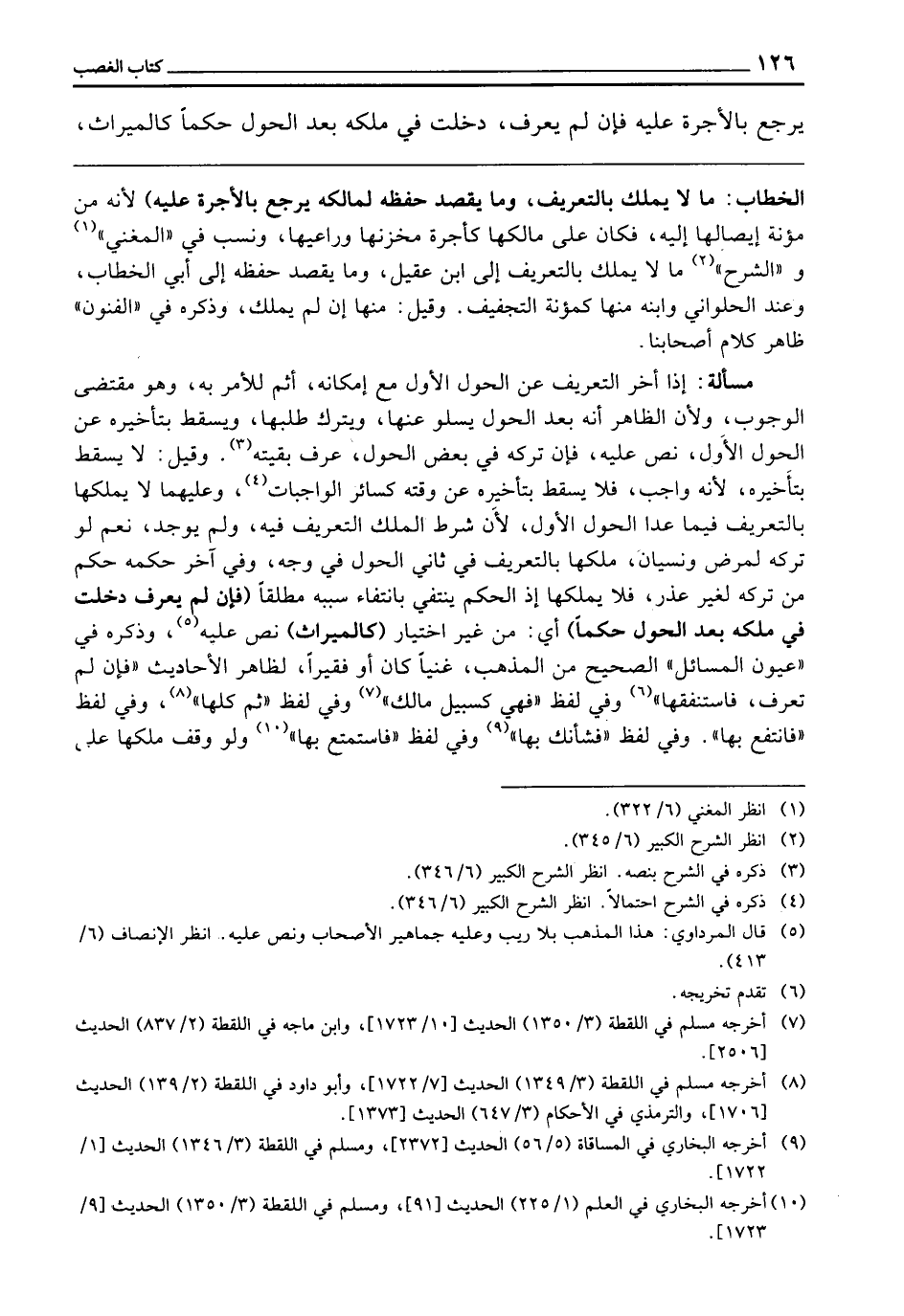 مَسْأَلَةٌ: إِذَا أَخَّرَ التَّعْرِيفَ عَنِ الْحَوْلِ الْأَوَّلِ مَعَ إِمْكَانِهِ أَثِمَ لِلْأَمْرِ بِهِ، وَهُوَ مُقْتَضَى الْوُجُوبِ، وَلِأَنَّ الظَّاهِرَ أَنَّهُ بَعْدَ الْحَوْلِ يَسْلُو عَنْهَا وَيَتْرُكُ طَلَبَهَا، وَيَسْقُطُ بِتَأْخِيرِهِ عَنِ الْحَوْلِ الْأَوَّلِ، نُصَّ عَلَيْهِ، فَإِنْ تَرَكَهُ فِي بَعْضِ الْحَوْلِ عُرِّفَ بَقِيَّتَهُ، وَقِيلَ: لَا يَسْقُطُ بِتَأْخِيرِهِ؛ لِأَنَّهُ وَاجِبٌ فَلَا يَسْقُطُ بِتَأْخِيرِهِ عَنْ وَقْتِهِ كَسَائِرِ الْوَاجِبَاتِ، وَعَلَيْهِمَا لَا يَمْلِكُهَا بِالتَّعْرِيفِ فِيمَا عَدَا الْحَوْلَ الْأَوَّلَ؛ لِأَنَّ شَرْطَ الْمِلْكِ التَّعْرِيفُ فِيهِ وَلَمْ يُوجَدْ، نَعَمْ لَوْ تَرَكَهُ لِمَرَضٍ وَنِسْيَانٍ مَلَكَهَا بِالتَّعْرِيفِ فِي ثَانِي الْحَوْلِ فِي وَجْهٍ، وَفِي آخَرَ حُكْمُهُ حُكْمُ مَنْ تَرَكَهُ لِغَيْرِ عُذْرٍ فَلَا يَمْلِكُهَا، إِذِ الْحُكْمُ يَنْتَفِي بِانْتِفَاءِ سَبَبِهِ مُطْلَقًا (فَإِنْ لَمْ يُعَرِّفْ دَخَلَتْ فِي مِلْكِهِ بَعْدَ الْحَوْلِ حُكْمًا) أَيْ: مِنْ غَيْرِ اخْتِيَارٍ (كَالْمِيرَاثِ) نَصَّ عَلَيْهِ، وَذَكَرَهُ فِي " عُيُونِ الْمَسَائِلِ " الصَّحِيحُ مِنَ الْمَذْهَبِ غَنِيًّا كَانَ أَوْ فَقِيرًا لِظَاهِرِ الْأَحَادِيثِ «فَإِنْ لَمْ تُعَرِّفْ فَاسْتَنْفِقْهَا» وَفِي لَفْظٍ «فَهِيَ كَسَبِيلِ مَالِكَ» وَفِي لَفْظٍ " ثُمَّ كُلْهَا " وَفِي لَفْظٍ " فَانْتَفِعْ بِهَا " وَفِي لَفْظٍ «فَشَأْنُكَ بِهَا» وَفِي لَفْظٍ «فَاسْتَمْتِعْ بِهَا» وَلَوْ وَقَفَ مِلْكُهَا عَلَى