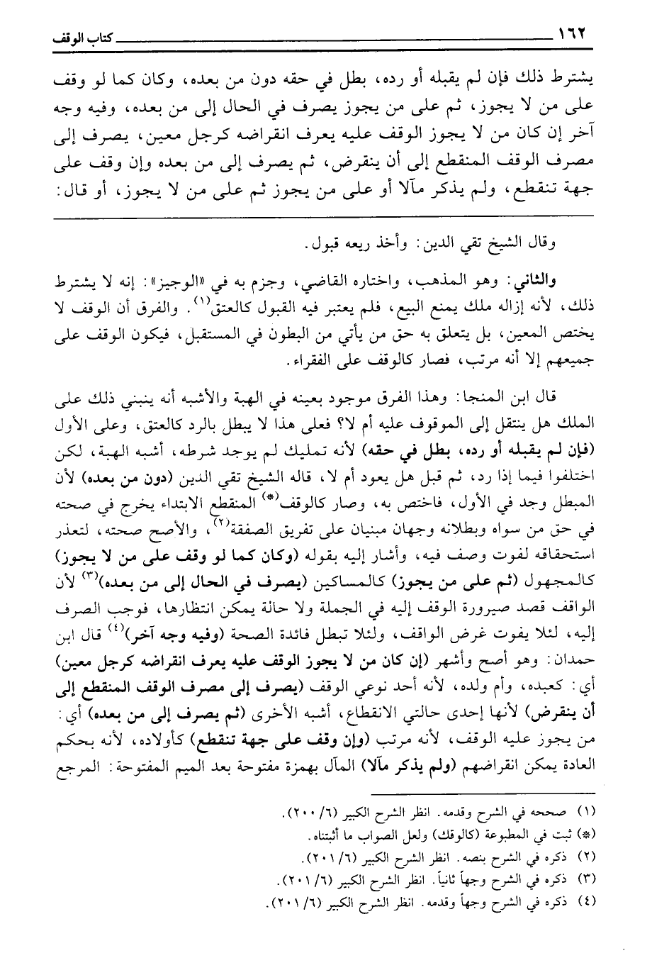 قَالَ ابْنُ الْمُنَجَّا: وَهَذَا الْفَرْقُ مَوْجُودٌ بِعَيْنِهِ فِي الْهِبَةِ وَالْأَشْبَهُ أَنَّهُ يَنْبَنِي ذَلِكَ عَلَى الْمِلْكِ هَلْ يَنْتَقِلُ إِلَى الْمَوْقُوفِ عَلَيْهِ أَمْ لَا؟ فَعَلَى هَذَا لَا يَبْطُلُ بِالرَّدِّ كَالْعِتْقِ، وَعَلَى الْأَوَّلِ (فَإِنْ لَمْ يَقْبَلْهُ أَوْ رَدَّهُ بَطَلَ فِي حَقِّهِ) ؛ لِأَنَّهُ تَمْلِيكٌ لَمْ يُوجَدْ شَرْطُهُ أَشْبَهَ الْهِبَةَ، لَكِنِ اخْتَلَفُوا فِيمَا إِذَا رَدَّ ثُمَّ قَبِلَ هَلْ يَعُودُ أَمْ لَا؛ قَالَهُ الشَّيْخُ تَقِيُّ الدِّينِ (دُونَ مَنْ بَعْدَهُ) ؛ لِأَنَّ الْمُبْطِلَ وُجِدَ فِي الْأَوَّلِ فَاخْتَصَّ بِهِ، وَصَارَ كَالْوَقْفِ الْمُنْقَطِعِ الِابْتِدَاءِ، يَخْرُجُ فِي صِحَّتِهِ فِي حَقِّ مَنْ سِوَاهُ وَبُطْلَانِهِ وَجْهَانِ مَبْنِيَّانِ عَلَى تَفْرِيقِ الصَّفْقَةِ، وَالْأَصَحُّ صِحَّتُهُ لِتَعَذُّرِ اسْتِحْقَاقِهِ لِفَوْتِ وَصْفٍ فِيهِ، وَأَشَارَ إِلَيْهِ بِقَوْلِهِ: (وَكَانَ كَمَا لَوْ وَقَفَ عَلَى مَنْ لَا يَجُوزُ) كَالْمَجْهُولِ (ثُمَّ عَلَى مَنْ يَجُوزُ) كَالْمَسَاكِينِ (يُصْرَفُ فِي الْحَالِ إِلَى مَنْ بَعْدَهُ) ؛ لِأَنَّ الْوَاقِفَ قَصَدَ صَيْرُورَةَ الْوَقْفِ إِلَيْهِ فِي الْجُمْلَةِ وَلَا حَالَةَ يُمْكِنُ انْتِظَارُهَا، فَوَجَبَ الصَّرْفُ إِلَيْهِ؛ لِئَلَّا يَفُوتَ غَرَضُ الْوَاقِفِ، وَلِئَلَّا تَبْطُلَ فَائِدَةُ الصِّحَّةِ (وَفِيهِ وَجْهٌ آخَرُ) ، قَالَ ابْنُ حَمْدَانَ: وَهُوَ أَصَحُّ وَأَشْهَرُ (إِنْ كَانَ مَنْ لَا يَجُوزُ الْوَقْفُ عَلَيْهِ يُعْرَفُ انْقِرَاضُهُ كَرَجُلٍ مُعَيَّنٍ) أَيْ كَعَبْدِهِ، وَأُمِّ وَلَدِهِ؛ لِأَنَّهُ أَحَدُ نَوْعَيِ الْوَقْفِ (يُصْرَفُ إِلَى مَصْرِفِ الْوَقْفِ الْمُنْقَطِعِ إِلَى أَنْ يَنْقَرِضَ) ؛ لِأَنَّهَا إِحْدَى حَالَتَيْ الِانْقِطَاعِ أَشْبَهَ الْأُخْرَى (ثُمَّ يُصْرَفُ إِلَى مَنْ بَعْدَهُ) ، أَيْ مَنْ يَجُوزُ عَلَيْهِ الْوَقْفُ؛ لِأَنَّهُ مُرَتَّبٌ (وَإِنْ وَقَفَ عَلَى جِهَةٍ تَنْقَطِعُ) كَأَوْلَادِهِ؛ لِأَنَّهُ بِحُكْمِ الْعَادَةِ يُمْكِنُ انْقِرَاضُهُمْ (وَلَمْ يَذْكُرْ مَآلًا) الْمَآلُ - بِهَمْزَةٍ مَفْتُوحَةٍ بَعْدَ الْمِيمِ الْمَفْتُوحَةِ - الْمَرْجِعُ