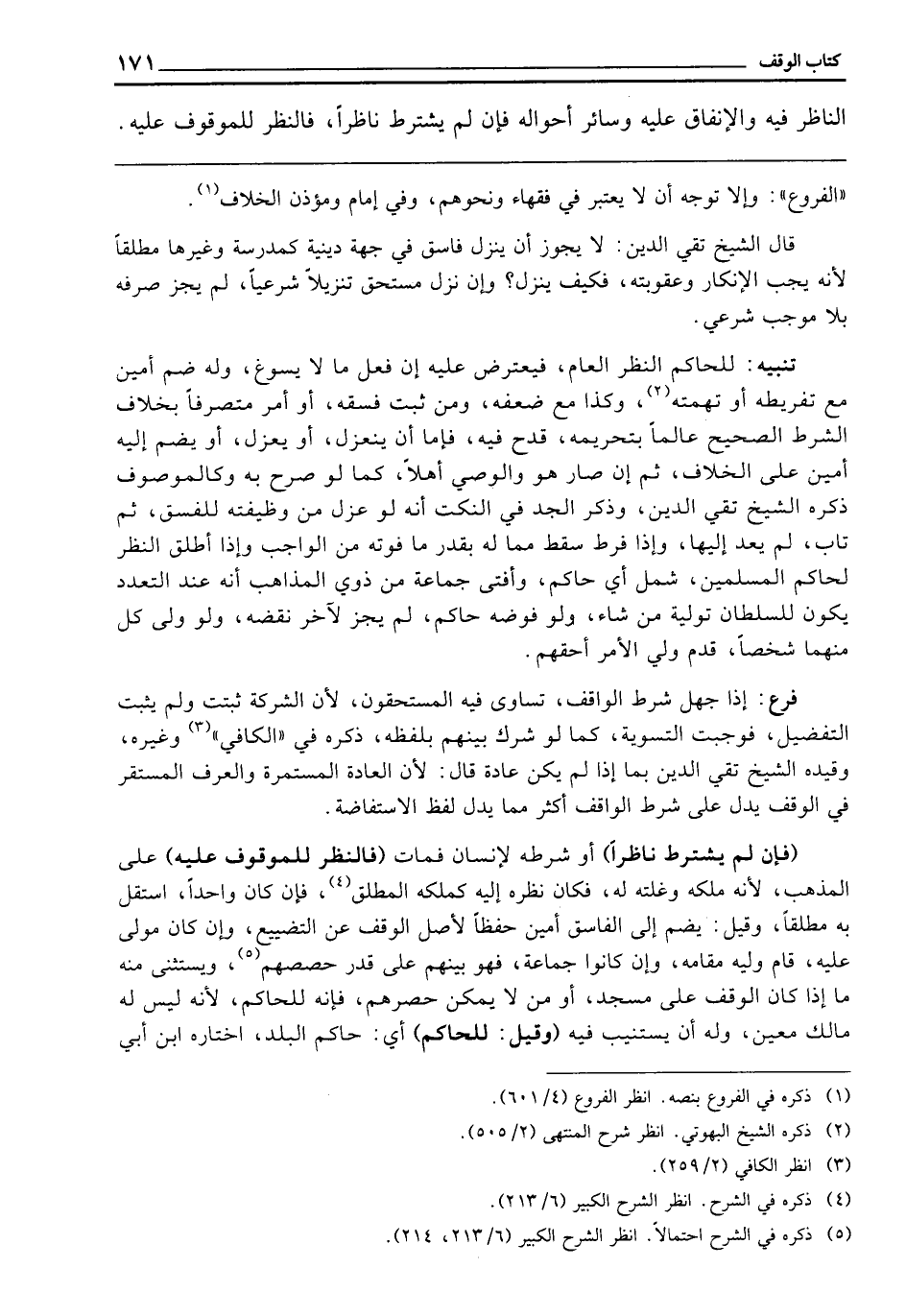 ـــــــــــــــــــــــــــــQ" الْفُرُوعِ ": وَإِلَّا تَوَجَّهَ أَنْ لَا يُعْتَبَرَ فِي فُقَهَاءَ وَنَحْوِهِمْ وَفِي إِمَامٍ وَمُؤَذِّنٍ الْخِلَافُ. قَالَ الشَّيْخُ تَقِيُّ الدِّينِ: لَا يَجُوزُ أَنْ يَنْزِلَ فَاسِقٌ فِي جِهَةٍ دِينِيَّةٍ كَمَدْرَسَةٍ وَغَيْرِهَا مُطْلَقًا؛ لِأَنَّهُ يَجِبُ الْإِنْكَارُ وَعُقُوبَتُهُ، فَكَيْفَ يَنْزِلُ؟ وَإِنْ نَزَلَ مُسْتَحَقٌّ تَنْزِيلًا شَرْعِيًّا لَمْ يَجُزْ صَرْفُهُ بِلَا مُوجِبٍ شَرْعِيٍّ.