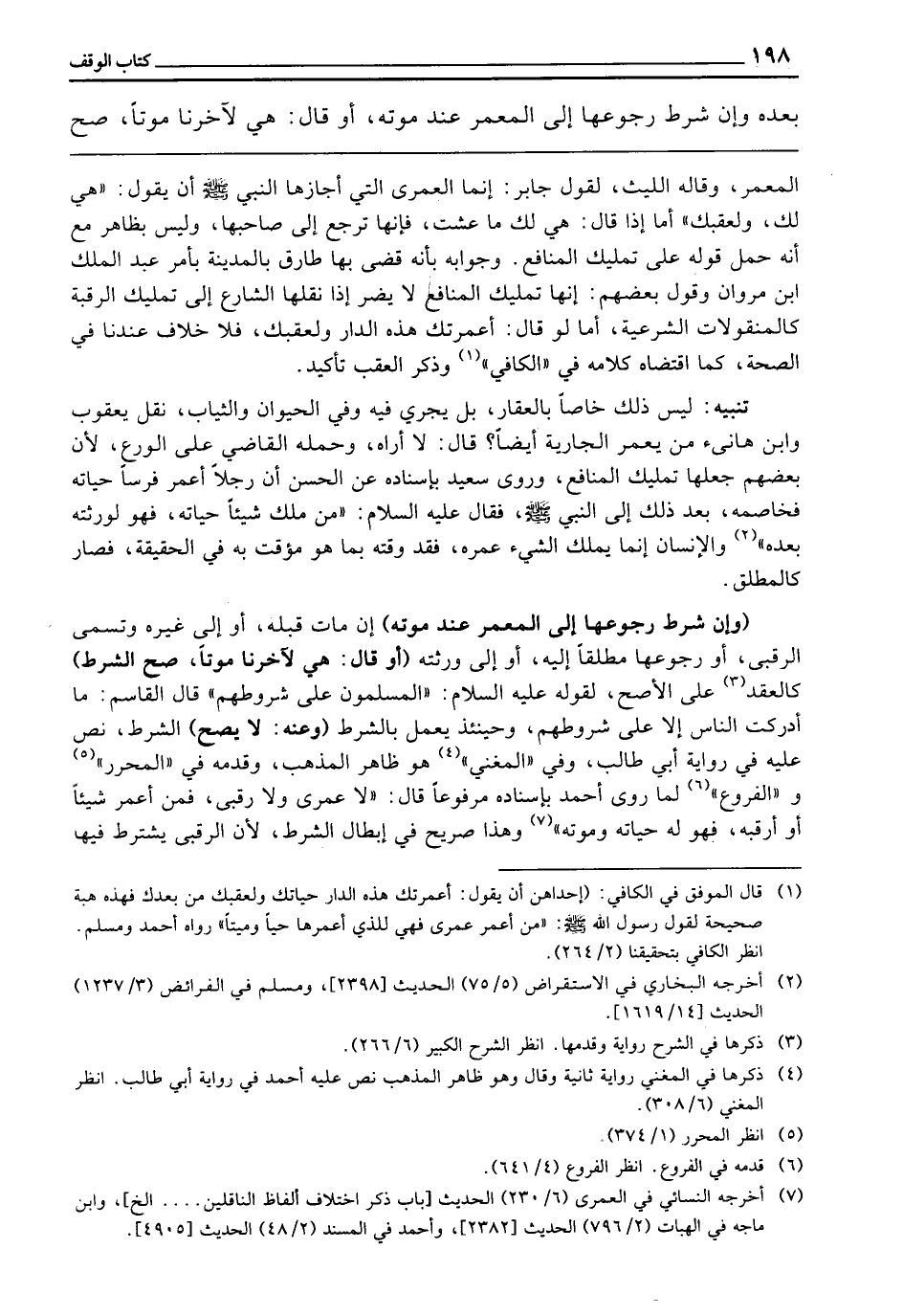 ـــــــــــــــــــــــــــــQالْمُعْمِرِ، وَقَالَهُ اللَّيْثُ، لِقَوْلِ جَابِرٍ: إِنَّمَا الْعُمْرَى الَّتِي أَجَازَهَا النَّبِيُّ - صَلَّى اللَّهُ عَلَيْهِ وَسَلَّمَ - أَنْ يَقُولَ: هِيَ لَكَ وَلِعَقِبِكَ، أَمَّا إِذَا قَالَ: هِيَ لَكَ مَا عِشْتَ، فَإِنَّهَا تَرْجِعُ إِلَى صَاحِبِهَا، وَلَيْسَ بِظَاهِرٍ، مَعَ أَنَّهُ حَمَلَ قَوْلَهُ عَلَى تَمْلِيكِ الْمَنَافِعِ، وَجَوَابُهُ بِأَنَّهُ قَضَى بِهَا طَارِقٌ بِالْمَدِينَةِ بِأَمْرِ عَبْدِ الْمَلِكِ بْنِ مَرْوَانَ، وَقَوْلُ بَعْضِهِمْ: إِنَّهَا تَمْلِيكُ الْمَنَافِعِ، لَا يَضُرُّ إِذَا نَقَلَهَا الشَّارِعُ إِلَى تَمْلِيكِ الرَّقَبَةِ كَالْمَنْقُولَاتِ الشَّرْعِيَّةِ، أَمَّا لَوْ قَالَ: أَعْمَرْتُكَ هَذِهِ الدَّارَ وَلِعَقِبِكَ فَلَا خِلَافَ عِنْدِنَا فِي الصِّحَّةِ كَمَا اقْتَضَاهُ كَلَامُهُ فِي " الْكَافِي " وَذِكْرُ الْعَقِبِ تَأْكِيدٌ.