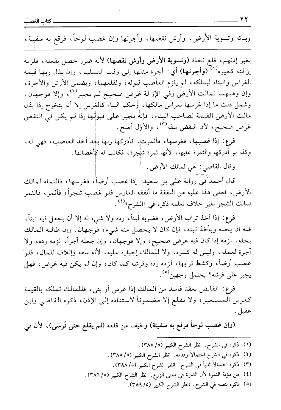 ـــــــــــــــــــــــــــــQبِغَيْرِ إِذْنِهِمْ قَلَعَ نَخْلَهُ (وَتَسْوِيَةِ الْأَرْضِ، وَأَرْشِ نَقْصِهَا) لِأَنَّهُ ضَرَرٌ حَصَلَ بِفِعْلِهِ فَلَزِمَهُ إِزَالَتُهُ كَغَيْرِهِ (وَأُجْرَتُهَا) أَيْ: أُجْرَةُ مِثْلِهَا إِلَى وَقْتِ التَّسْلِيمِ، وَإِنْ بَذَلَ رَبُّهَا قِيمَةَ الْغِرَاسِ وَالْبِنَاءِ لِيَمْلِكَهُ لَمْ يَلْزَمِ الْغَاصِبَ قَبُولُهُ، وَلَهُ قَلْعُهُمَا، وَيُضَمَّنُ الْأَرْشَ وَالْأُجْرَةَ، وَإِنْ وَهَبَهُمَا لِمَالِكِ الْأَرْضِ وَفِي الْإِزَالَةِ غَرَضٌ صَحِيحٌ لَمْ يُجْبَرْ، وَإِلَّا فَوَجْهَانِ. وَشَمِلَ ذَلِكَ مَا إِذَا غَرَسَهَا بِغِرَاسِ مَالِكِهَا، وَحُكْمُ الْبِنَاءِ كَالْغَرْسِ إِلَّا أَنَّهُ يُتَخَرَّجُ إِذَا بَذَلَ مَالِكُ الْأَرْضِ الْقِيمَةَ لِصَاحِبِ الْبِنَاءِ، فَإِنَّهُ يُجْبَرُ عَلَى قَبُولِهَا إِذَا لَمْ يَكُنْ فِي النَّقْصِ غَرَضٌ صَحِيحٌ، لِأَنَّ النَّقْصَ سَفَهٌ، وَالْأَوَّلُ أَصَحُّ.
