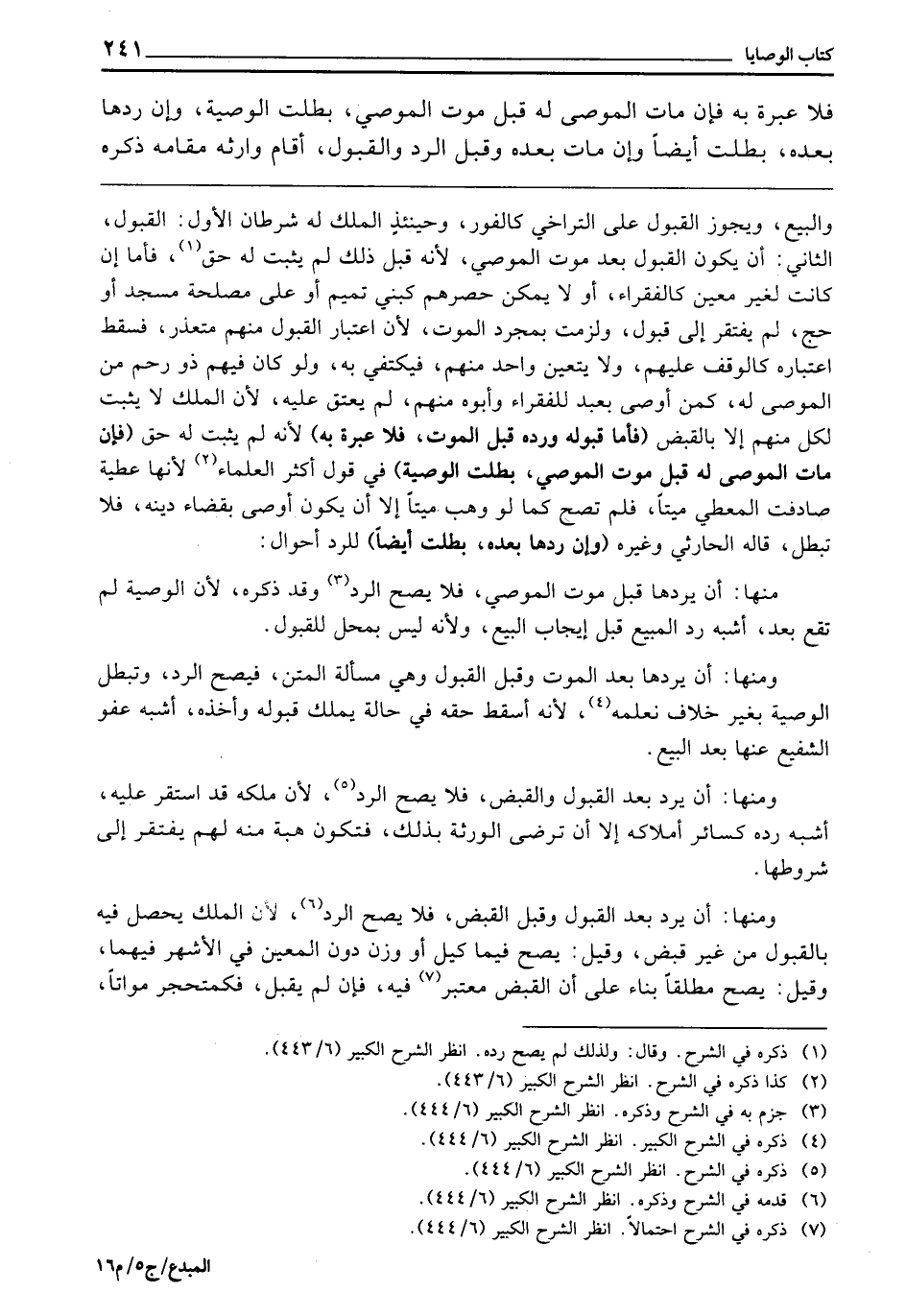 وَمِنْهَا: أَنْ يَرُدَّهَا بَعْدَ الْمَوْتِ، وَقَبْلَ الْقَبُولِ، وَهِيَ مَسْأَلَةُ الْمَتْنِ فَيَصِحُّ الرَّدُّ، وَتَبْطُلُ الْوَصِيَّةُ بِغَيْرِ خِلَافٍ نَعْلَمُهُ؛ لِأَنَّهُ أَسْقَطَ حَقَّهُ فِي حَالَةٍ يَمْلِكُ قَبُولَهُ وَأَخْذَهُ، أَشْبَهَ عَفْوَ الشَّفِيعِ عَنْهَا بَعْدَ الْبَيْعِ.