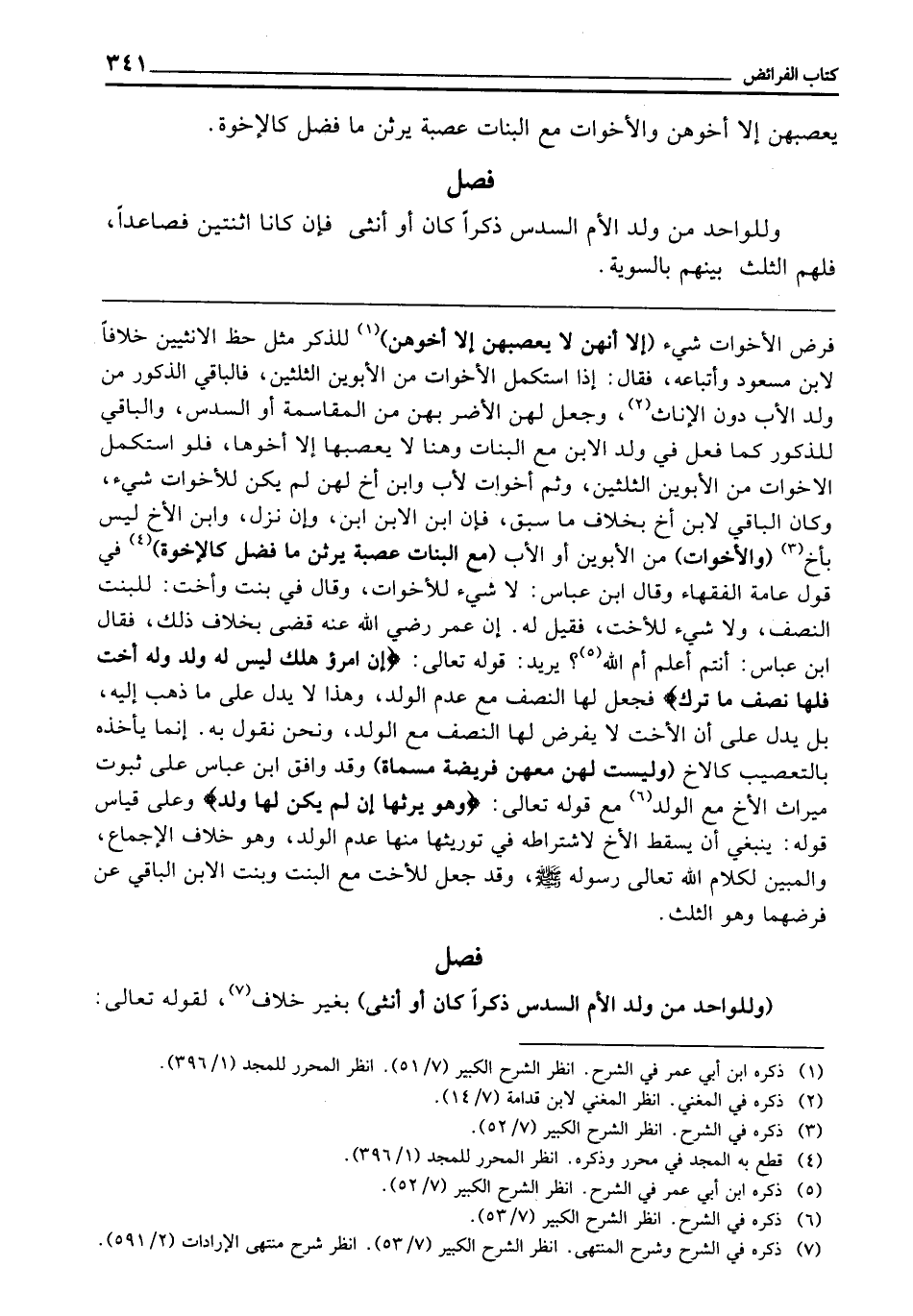 ـــــــــــــــــــــــــــــQفَرْضِ الْأَخَوَاتِ شَيْءٌ (إِلَّا أَنَّهُنَّ لَا يُعَصِّبُهُنَّ إِلَّا أَخُوهُنَّ) لِلذَّكَرِ مِثْلُ حَظِّ الْأُنْثَيَيْنِ، خِلَافًا لِابْنِ مَسْعُودٍ وَأَتْبَاعِهِ، فَقَالَ: إِذَا اسْتَكْمَلَ الْأَخَوَاتُ مِنَ الْأَبَوَيْنِ الثُّلُثَيْنِ، فَالْبَاقِي لِلذُّكُورِ مِنْ وَلَدِ الْأَبِ دُونَ الْإِنَاثِ، وَجَعَلَ لَهُنَّ الْأَضَرَّ بِهِنَّ مِنَ الْمُقَاسَمَةِ أَوِ السُّدُسَ، وَالْبَاقِي لِلذُّكُورِ كَمَا فَعَلَ فِي وَلَدِ الِابْنِ مَعَ الْبَنَاتِ، وَهُنَا لَا يُعَصِّبُهَا إِلَّا أَخُوهَا، فَلَوِ اسْتَكْمَلَ الْأَخَوَاتُ مِنَ الْأَبَوَيْنِ الثُّلُثَيْنِ، وَثَمَّ أَخَوَاتٌ لِأَبٍ وَابْنُ أَخٍ لَهُنَّ، لَمْ يَكُنْ لِلْأَخَوَاتِ شَيْءٌ، وَكَانَ الْبَاقِي لِابْنِ أَخٍ بِخِلَافِ مَا سَبَقَ، فَإِنَّ ابْنَ الِابْنِ ابْنٌ، وَإِنْ نَزَلَ، وَابْنُ الْأَخِ لَيْسَ بِأَخٍ، (وَالْأَخَوَاتُ) مِنَ الْأَبَوَيْنِ أَوِ الْأَبِ (مَعَ الْبَنَاتِ عَصَبَةٌ يَرِثْنَ مَا فَضَلَ كَالْإِخْوَةِ) فِي قَوْلِ عَامَّةِ الْفُقَهَاءِ، وَقَالَ ابْنُ عَبَّاسٍ: لَا شَيْءَ لِلْأَخَوَاتِ، وَقَالَ فِي بِنْتٍ وَأُخْتٍ: لِلْبِنْتِ النِّصْفُ، وَلَا شَيْءَ لِلْأُخْتِ، فَقِيلَ لَهُ: إِنَّ عُمَرَ - رَضِيَ اللَّهُ عَنْهُ - قَضَى بِخِلَافِ ذَلِكَ، فَقَالَ ابْنُ عَبَّاسٍ: أَنْتُمْ أَعْلَمُ أَمِ اللَّهُ؟ يُرِيدُ قَوْله تَعَالَى: {إِنِ امْرُؤٌ هَلَكَ لَيْسَ لَهُ وَلَدٌ وَلَهُ أُخْتٌ فَلَهَا نِصْفُ مَا تَرَكَ} [النساء: 176] فَجَعَلَ لَهَا النِّصْفَ مَعَ عَدَمِ الْوَلَدِ، وَهَذَا لَا يَدُلُّ عَلَى مَا ذَهَبَ إِلَيْهِ، بَلْ يَدُلُّ عَلَى أَنَّ الْأُخْتَ لَا يُفْرَضُ لَهَا النِّصْفُ مَعَ الْوَلَدِ، وَنَحْنُ نَقُولُ بِهِ، وَإِنَّمَا يَأْخُذُهُ بِالتَّعْصِيبِ، كَالْأَخِ (وَلَيْسَتْ لَهُنَّ مَعَهُنَّ فَرِيضَةٌ مُسَمَّاةٌ) وَقَدْ وَافَقَ ابْنُ عَبَّاسٍ عَلَى ثُبُوتِ مِيرَاثِ الْأَخِ مَعَ الْوَلَدِ، مَعَ قَوْله تَعَالَى: {وَهُوَ يَرِثُهَا إِنْ لَمْ يَكُنْ لَهَا وَلَدٌ} [النساء: 176] وَعَلَى قِيَاسِ قَوْلِهِ: يَنْبَغِي أَنْ يَسْقُطَ الْأَخُ لِاشْتِرَاطِهِ فِي تَوْرِيثِهَا مِنْهَا عَدَمَ الْوَلَدِ، وَهُوَ خِلَافُ الْإِجْمَاعِ، وَالْمُبَيِّنُ لِكَلَامِ اللَّهِ تَعَالَى رَسُولُهُ - صَلَّى اللَّهُ عَلَيْهِ وَسَلَّمَ -، وَقَدْ جَعَلَ لِلْأُخْتِ مَعَ الْبِنْتِ، وَبِنْتِ الِابْنِ الْبَاقِي عَنْ فَرْضِهِمَا، وَهُوَ الثُّلُثُ.