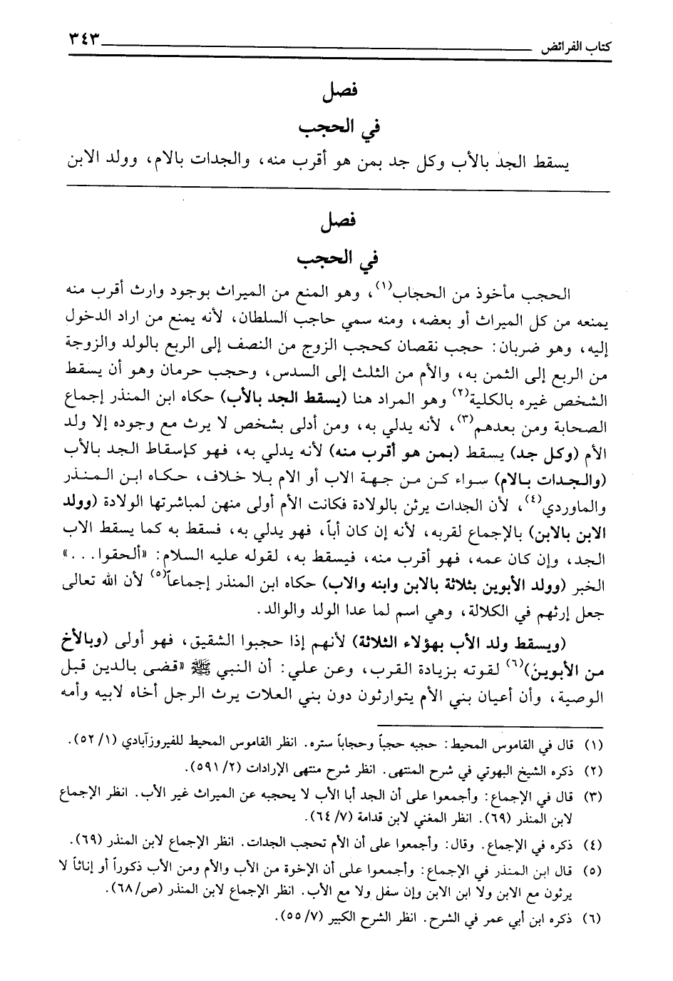 ـــــــــــــــــــــــــــــQ [فَصْلٌ فِي الْحَجْبِ]
