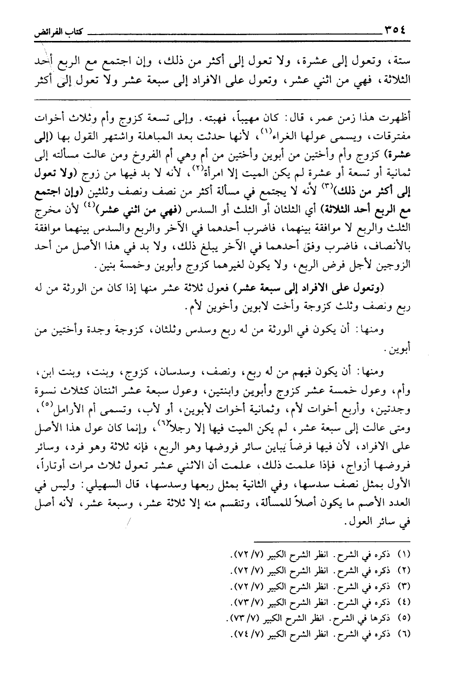 سِتَّةٍ، وَتَعُولُ إِلَى عَشَرَةٍ، وَلَا تَعُولُ إِلَى أَكْثَرَ مِنْ ذَلِكَ، وَإِنِ اجْتَمَعَ مَعَ الرُّبُعِ أَحَدُ الثَّلَاثَةِ فَهِيَ مِنِ اثْنَيْ عَشَرَ، وَتَعُولُ عَلَى الْأَفْرَادِ إِلَى سَبْعَةَ عَشَرَ، وَلَا تَعُولُ إِلَى أَكْثَرَ