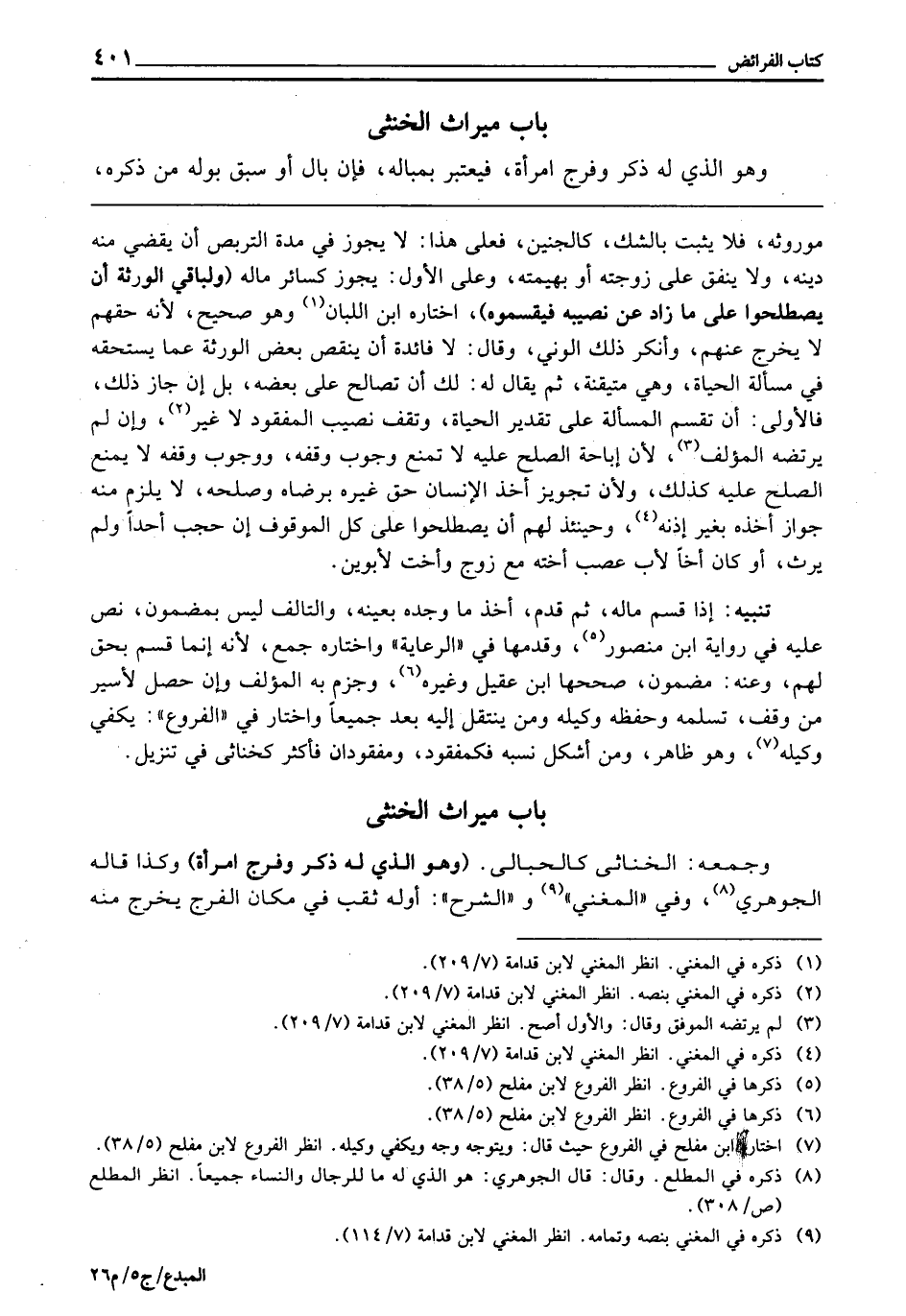 بَابُ مِيرَاثِ الْخُنْثَى وَهُوَ الَّذِي لَهُ ذَكَرٌ وَفَرْجُ امْرَأَةٍ، فَيُعْتَبَرُ بِمَبَالِهِ، فَإِنْ بَالَ أَوْ سَبَقَ بَوْلُهُ مِنْ ذَكَرِهِ،