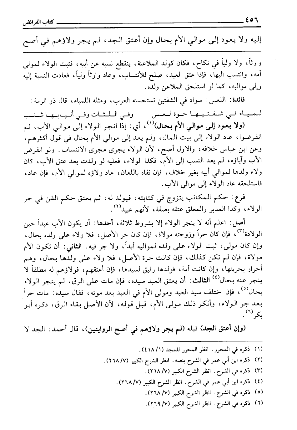 أَصْلٌ: اعْلَمْ أَنَّهُ لَا يَنْجَرُّ الْوَلَاءُ إِلَّا بِشُرُوطٍ ثَلَاثَةٍ، أَحَدُهَا: أَنْ يَكُونَ الْأَبُ عَبْدًا حِينَ الْوِلَادَةِ، فَإِنْ كَانَ حُرًّا، وَزَوْجَتُهُ مَوْلَاةً، فَإِنْ كَانَ حُرَّ الْأَصْلِ، فَلَا وَلَاءَ عَلَى وَلَدِهِ بِحَالٍ، وَإِنْ كَانَ مَوْلًى، ثَبَتَ الْوَلَاءُ عَلَى وَلَدِهِ لِمَوَالِيهِ أَبَدًا، وَلَا جَرَّ فِيهِ.