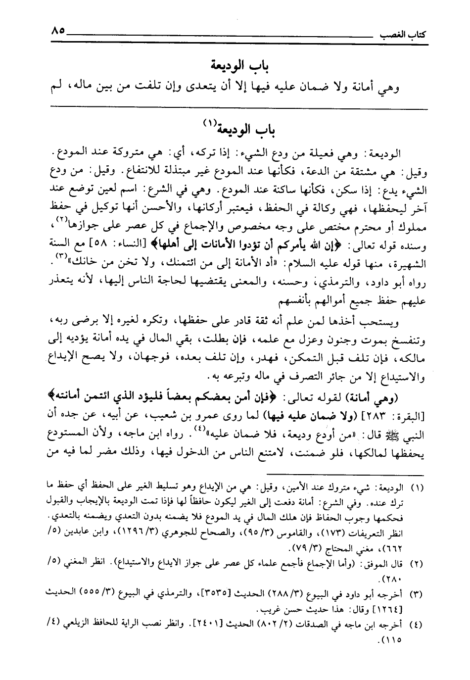 ـــــــــــــــــــــــــــــQ [بَابُ الْوَدِيعَةِ] [ضَمَانُ الْوَدِيعَةِ] [الْوَدِيعَةُ أَمَانَةٌ]