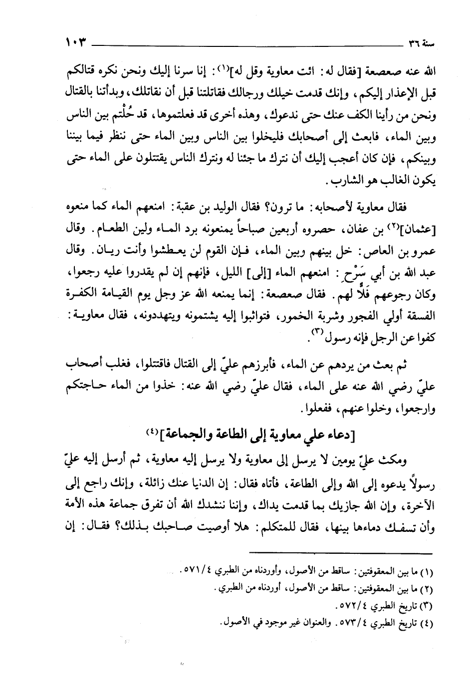 [4] تاريخ الطبري 4/ 573. والعنوان غير موجود في الأصول.