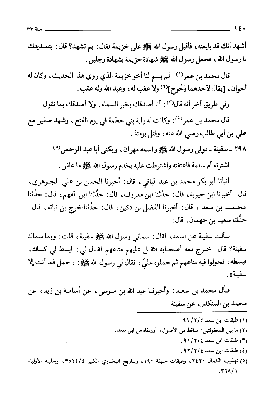 298- سفينة- مولى رسول الله صَلَّى اللَّهُ عَلَيْهِ وَسَلَّمَ واسمه مهران، ويكنى أبا عَبْد الرَّحْمَنِ [5] :