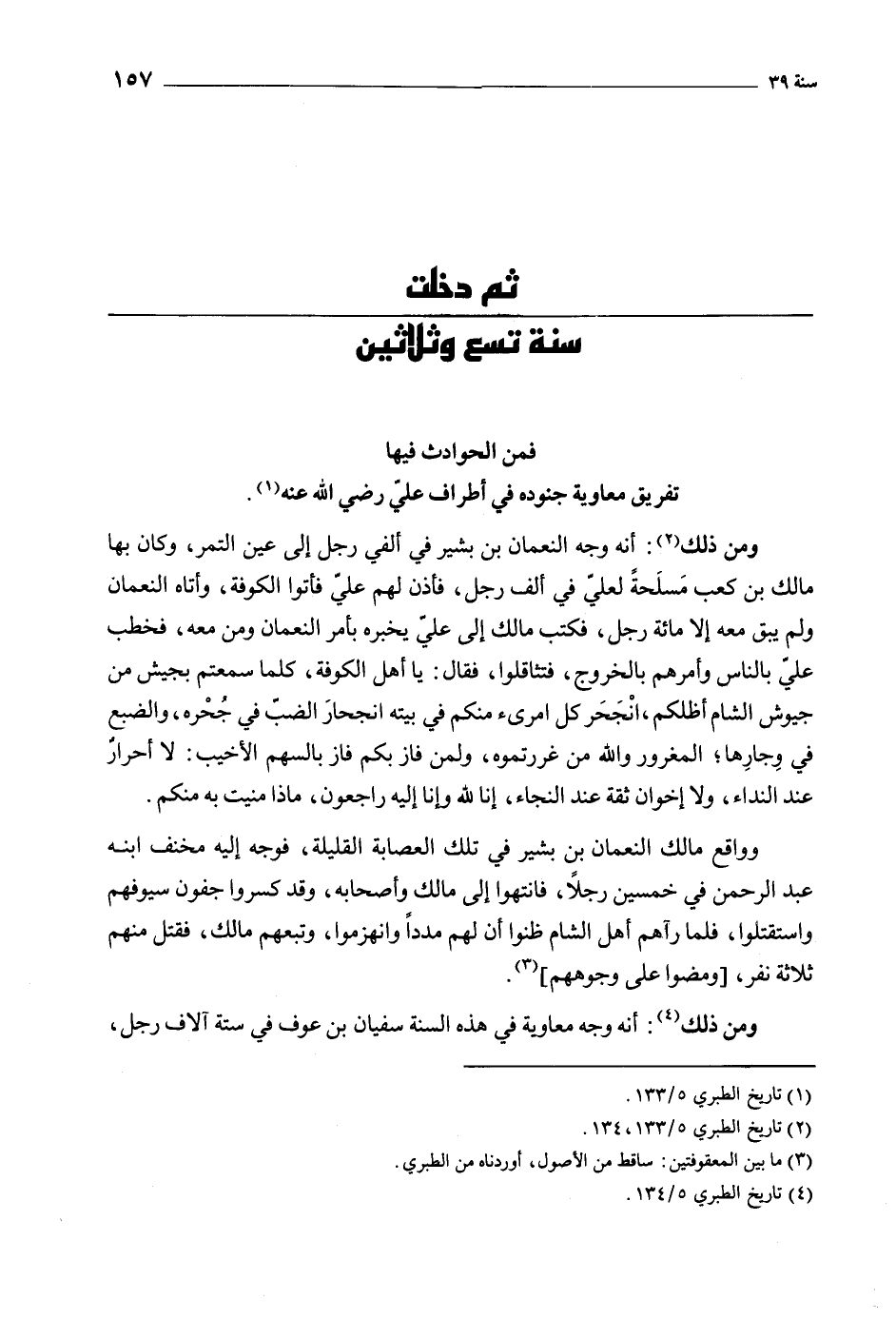 فمن الحوادث فيها تفريق معاوية جنوده فِي أطراف علي رضي الله عنه [1] .