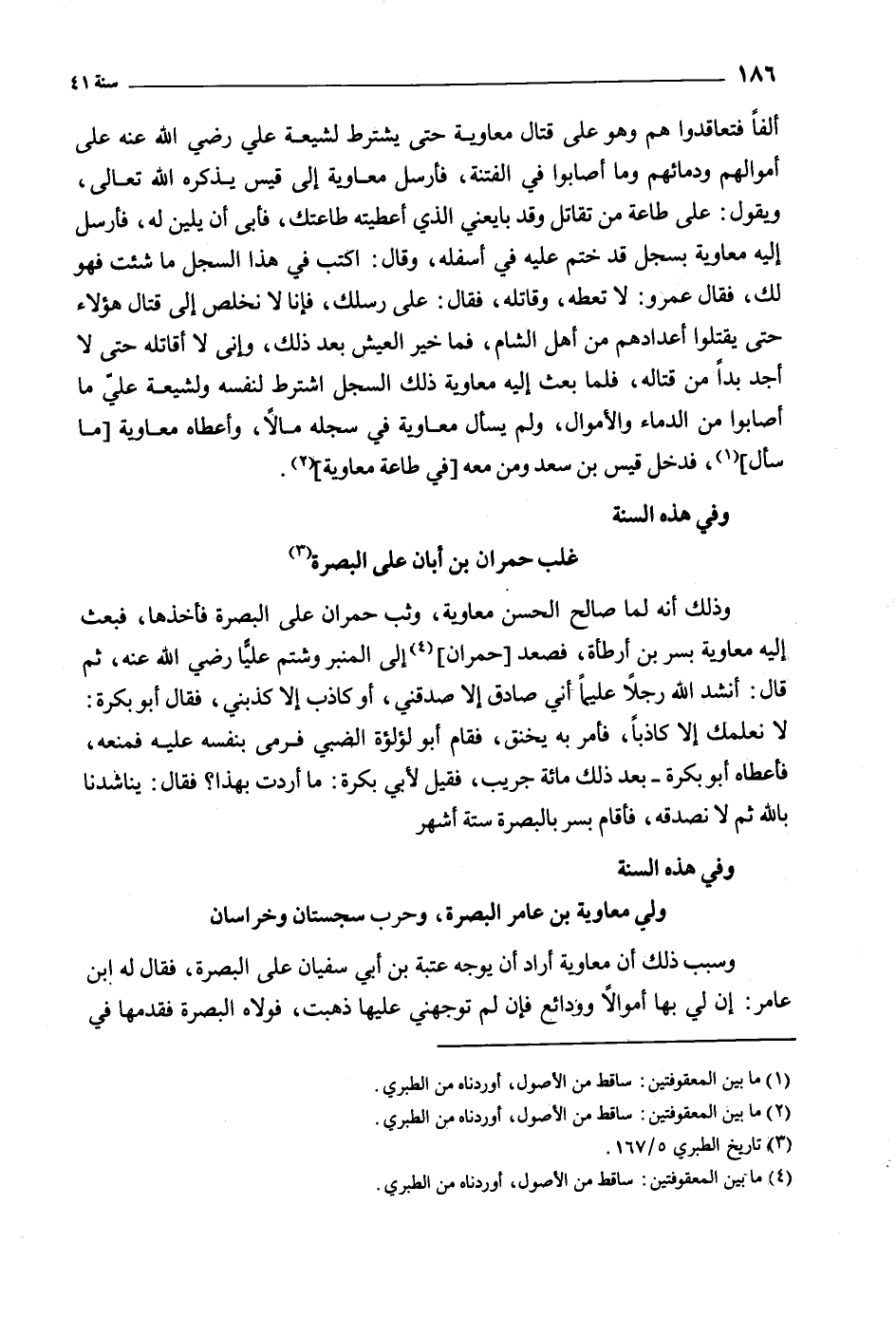ألفا فتعاقدوا هم وهو على قتال معاوية حتى يشترط لشيعة علي رضي الله عنه على أموالهم ودمائهم وما أصابوا فِي الفتنة، فأرسل معاوية إلى قيس يذكره الله تعالى، ويقول: على طاعة من تقاتل وقد بايعني الذي أعطيته طاعتك، فأبى أن يلين له، فأرسل إليه معاوية بسجل قد ختم عليه فِي أسفله، وقَالَ: اكتب فِي هذا السجل ما شئت فهو لك، فقَالَ عمرو: لا تعطه، وقاتله، فقَالَ: على رسلك، فإنا لا نخلص إلى قتال هؤلاء حتى يقتلوا أعدادهم من أهل الشام، فما خير العيش بعد ذلك، وإني لا أقاتله حتى لا أجد بدا من قتاله، فلما بعث إليه معاوية ذلك السجل اشترط لنفسه ولشيعة علي ما أصابوا من الدماء والأموال، ولم يسأل معاوية فِي سجله مالا، وأعطاه معاوية [ما سأل] [1] ، فدخل قيس بن سعد ومن معه [فِي طاعة معاوية] [2] .