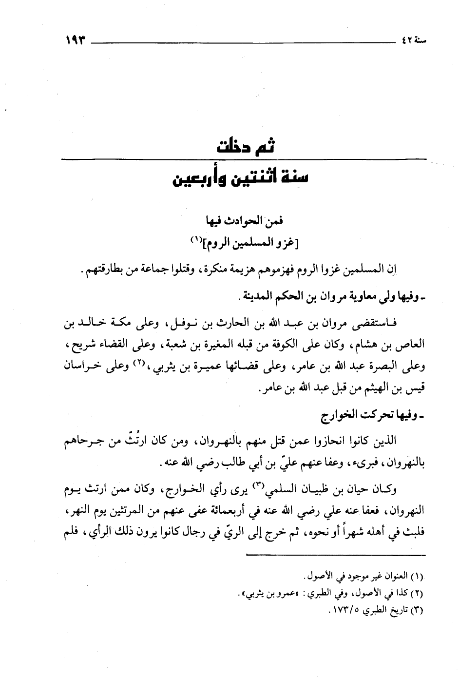أن المسلمين غزوا الروم فهزموهم هزيمة منكرة، وقتلوا جماعة من بطارقتهم.
