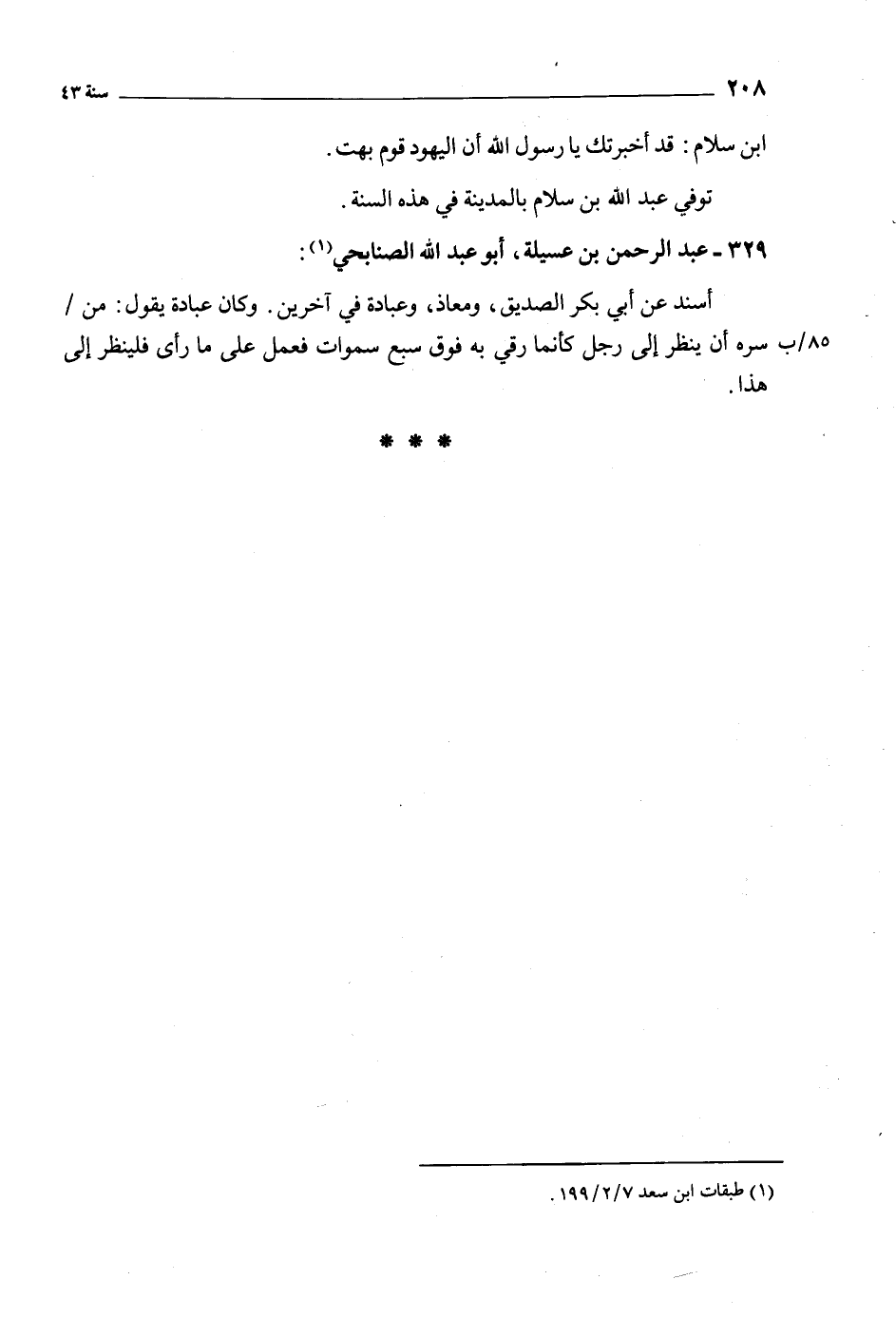 ابْنُ سَلامٍ: قَدْ أَخْبَرْتُكَ يَا رَسُولَ اللَّهِ أَنَّ الْيَهُودَ قَوْمٌ بُهُتٌ. توفي عَبْد اللَّهِ بن سلام بالمدينة فِي هذه السنة.
