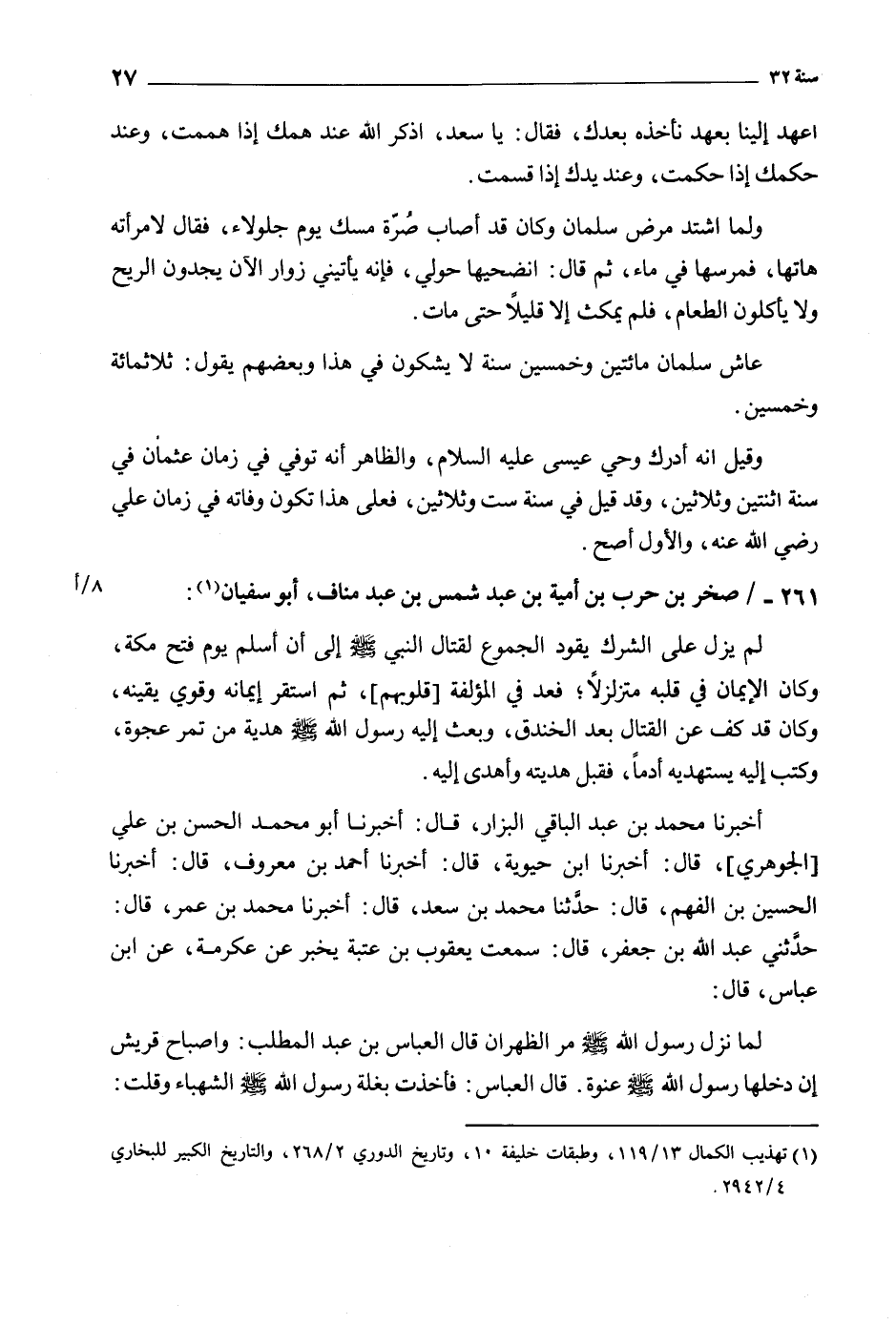 261-/ صخر بْنِ حَرْبِ بْنِ أُمَّيَةَ بْنِ عَبْدِ شَمْسٍ بن عبد مناف، أبو سفيان [1] :