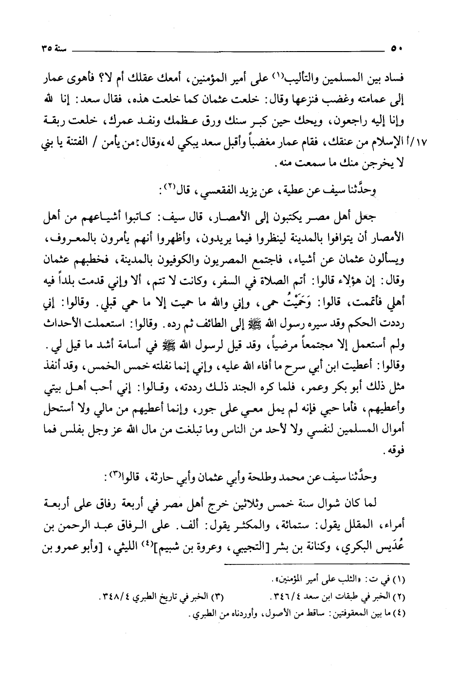 وحَدَّثَنَا سيف عن مُحَمَّد وطَلْحَة وأبي عثمان وأبي حارثة، قالوا [3] :