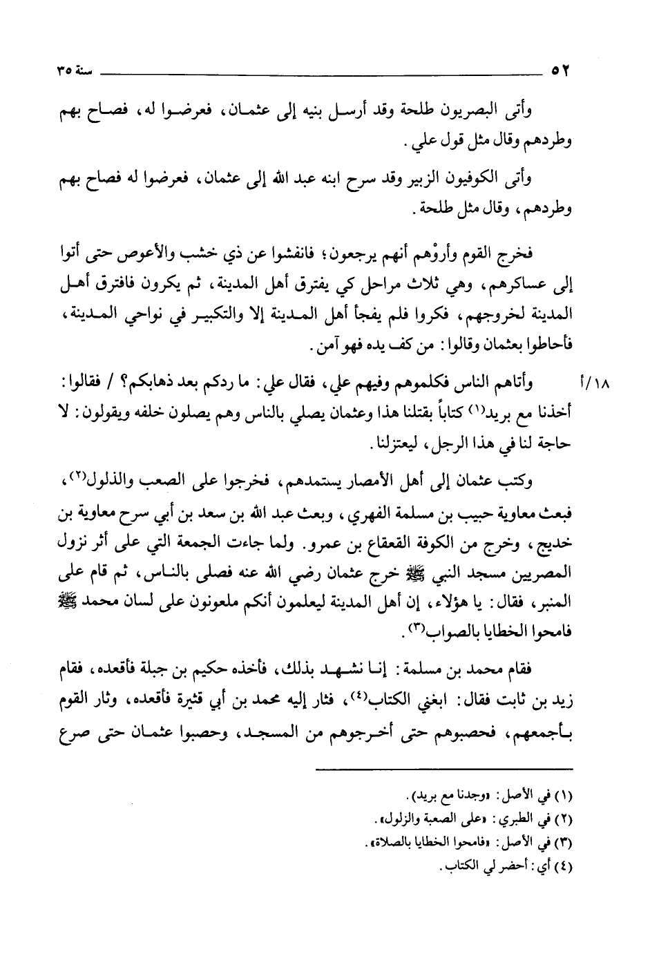 فقام مُحَمَّد بن مسلمة: إنا نشهد بذلك، فأخذه حكيم بن جبلة فأقعده، فقام زيد بن ثابت فقَالَ: ابغني الكتاب [4] ، فثار إليه مُحَمَّد بن أبي قثيرة فأقعده، وثار القوم بأجمعهم، فحصبوهم حتى أخرجوهم من المسجد، وحصبوا عثمان حتى صرع